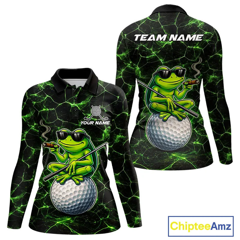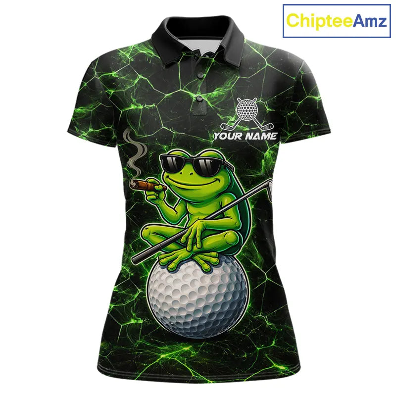 Black & Green Funny Frog Golf Polo shirts for Women Custom team golf shirts, ladies golf clothes NQS11584