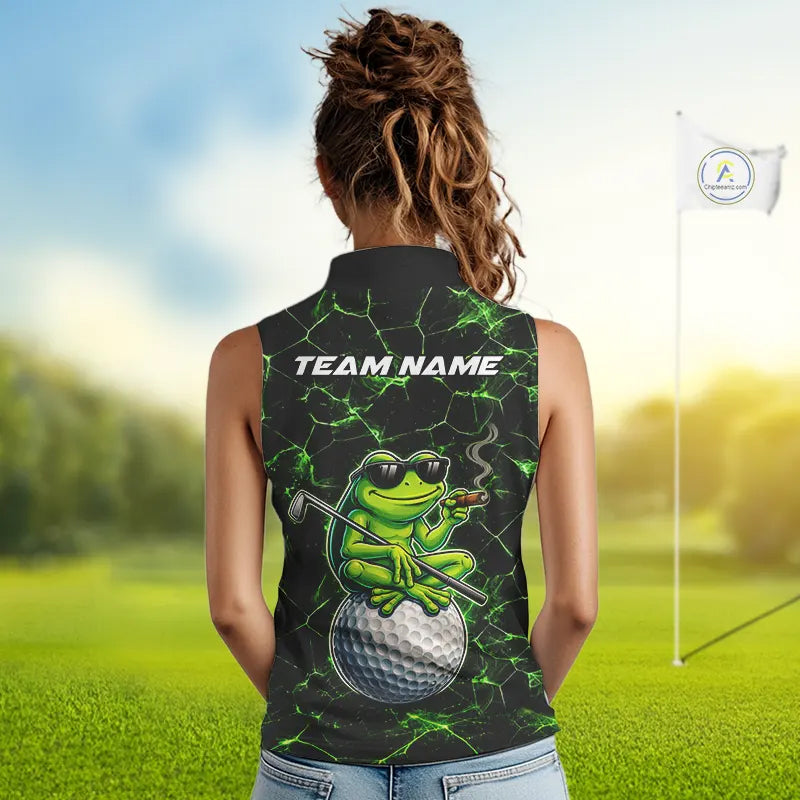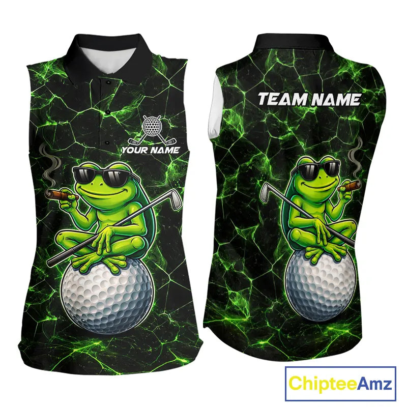 Black & Green Funny Frog Sleeveless Golf Polo shirts Custom team golf shirts, ladies golf clothes NQS11584