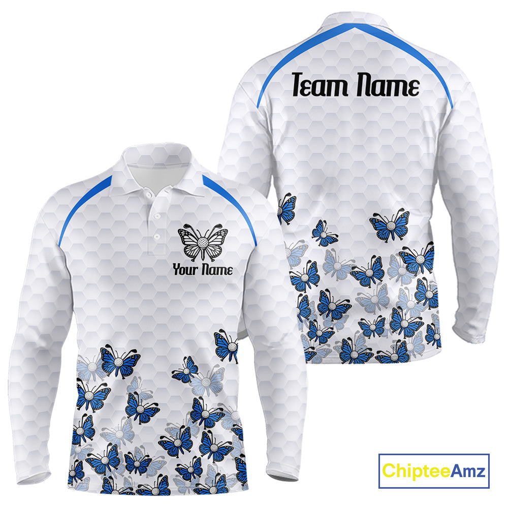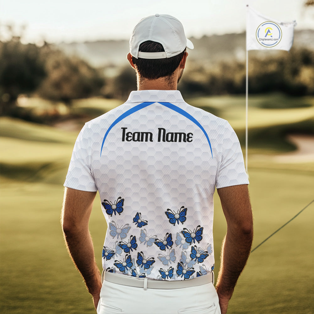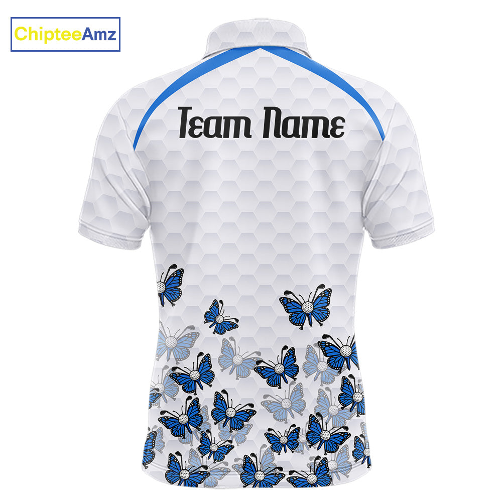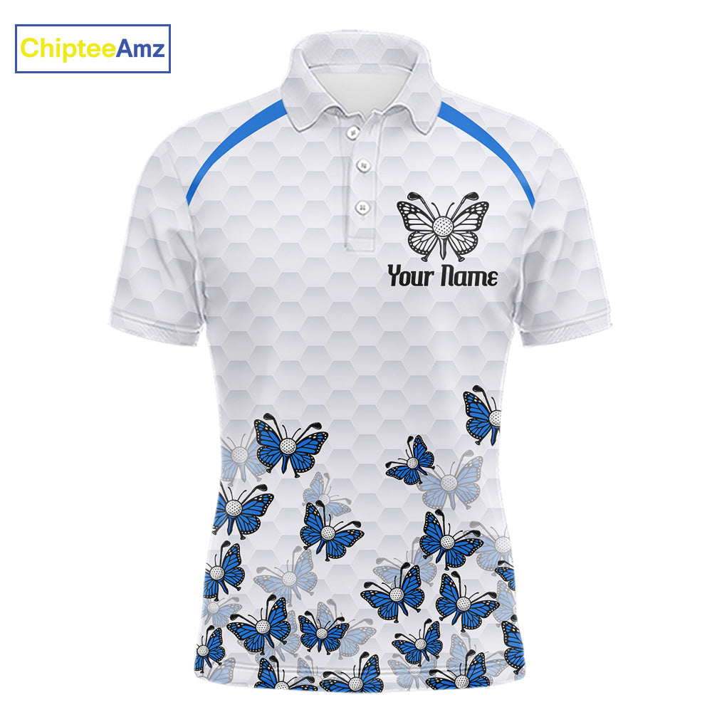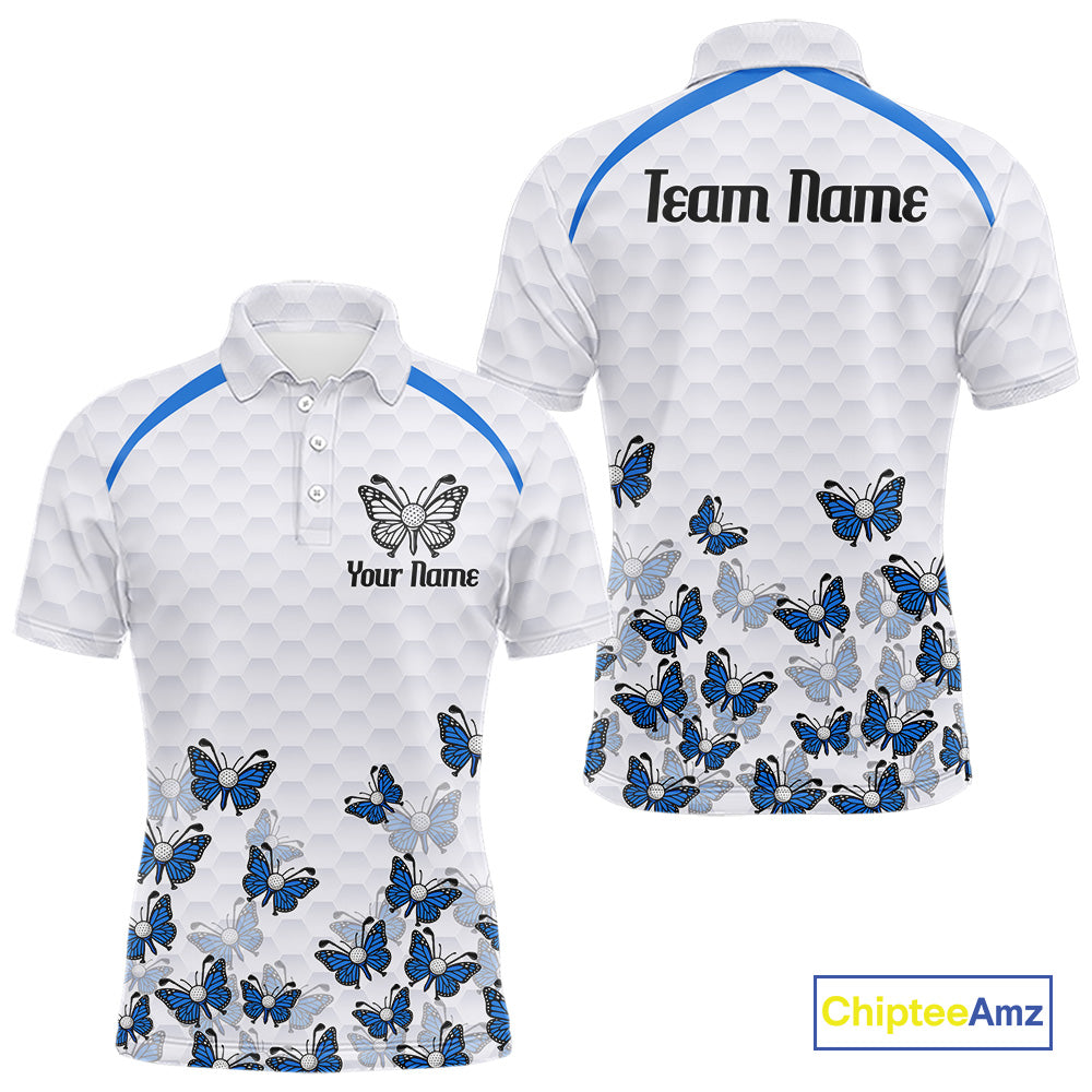 Blue Pattern Butterfly Mens Golf Polo Shirt Custom Name White Ball Golf Clothes Shirts NYN2909