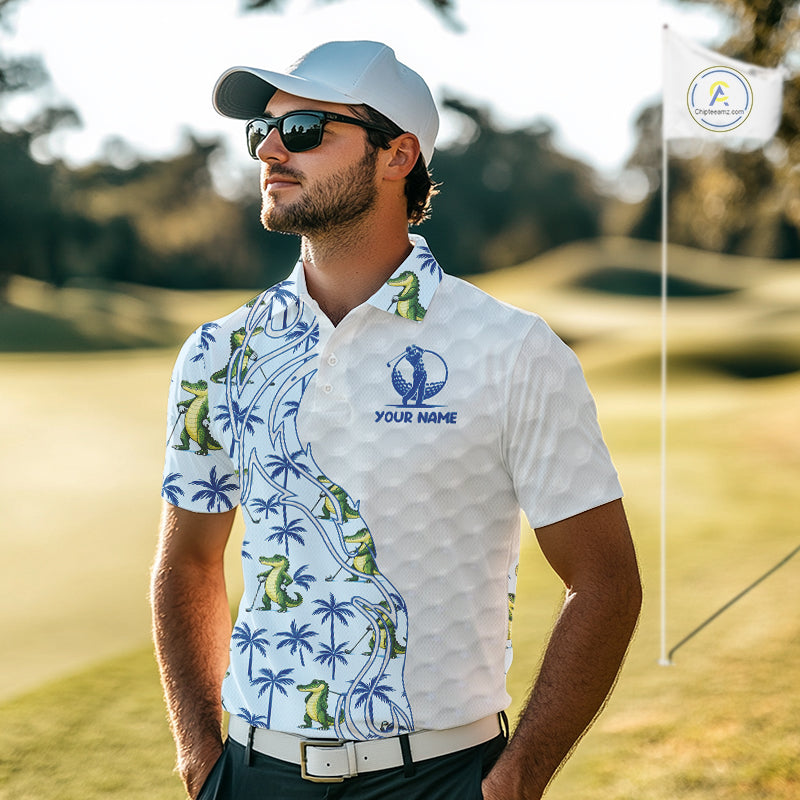 Funny Alligator Palm Tree Mens Golf Polo Shirt Custom Name Golf Top Funny Golf Gifts NBT496