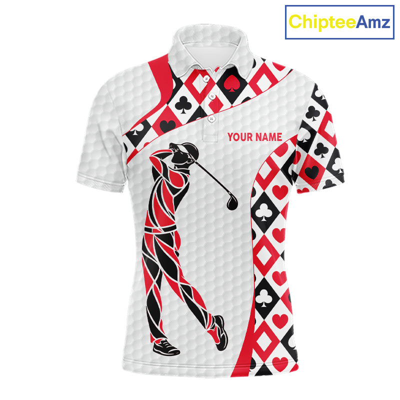 Personalized Poker Mens Golf Polo Shirt Custom Name Funny Golf Top For Team, Golfer Gift For Men NBT497