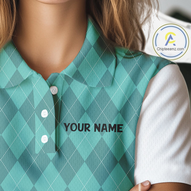 Turquoise argyle pattern Funny Flame Golf polo shirt for Women Custom team ladies Golf attire NQS11102