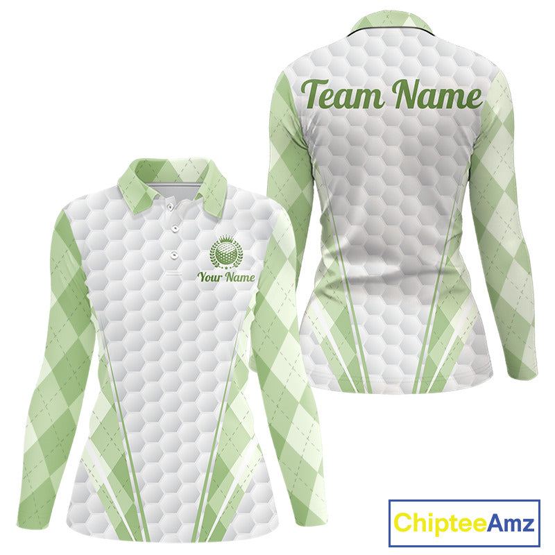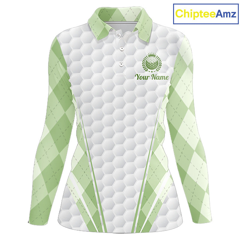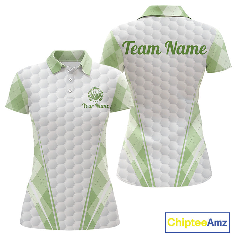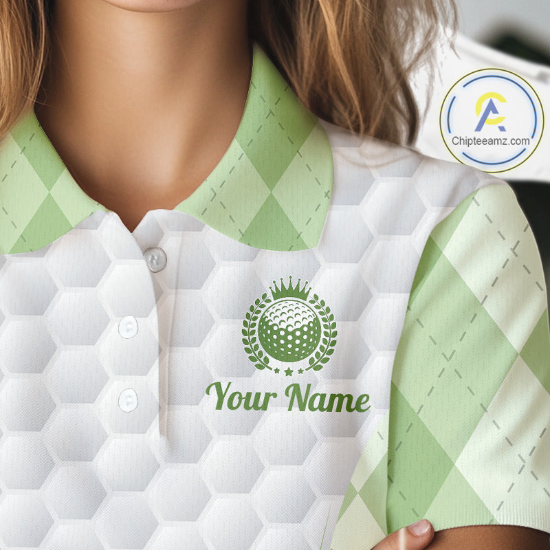 Womens Golf Polo Shirt Argyle Pattern Golf Shirts For Womens Green Argyle And White Golf Ball Gifts NYN2906