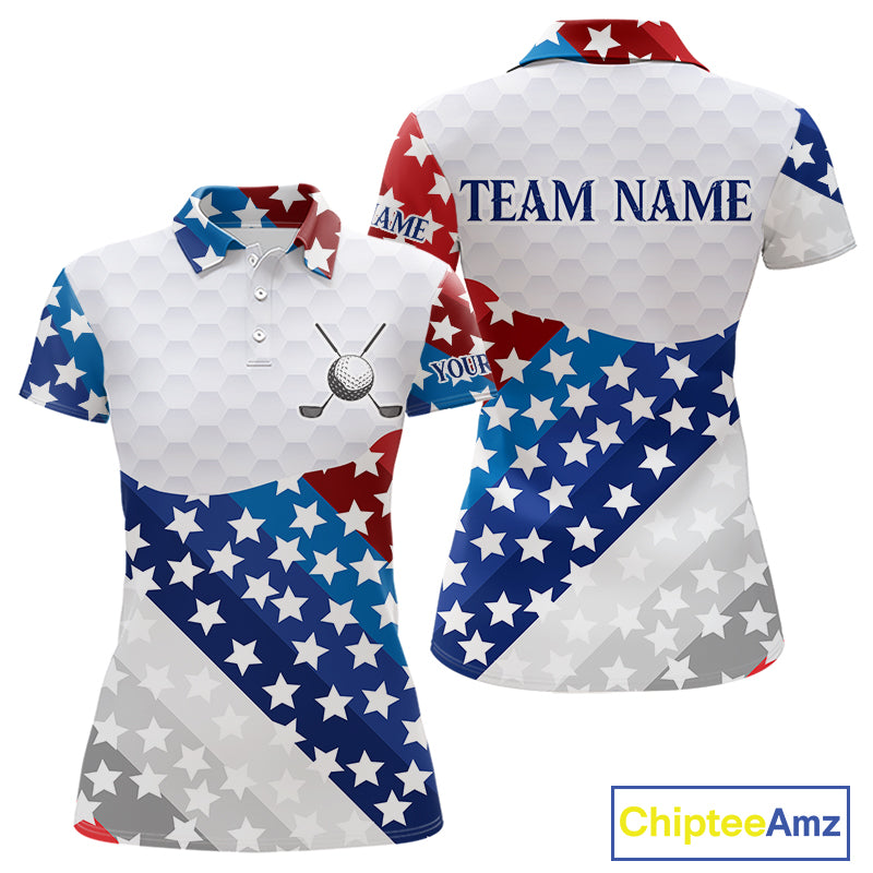 Womens Golf Polo Shirts Star Pattern Custom Patriotic Golf Team Shirts For Women, Golf Gifts NYN2915