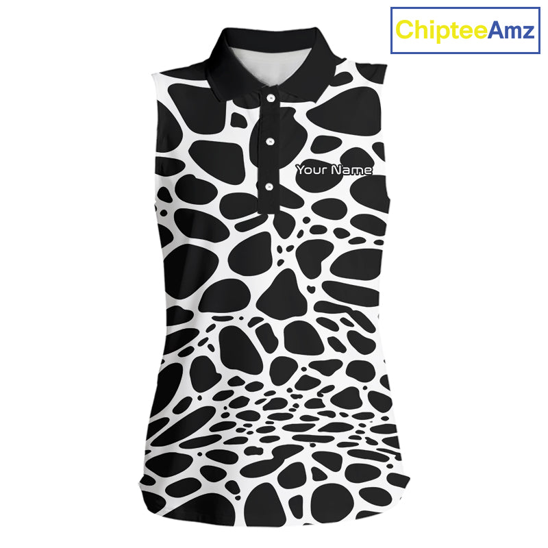 Womens Sleeveless Golf Polo Shirt Custom White Animal Mix Leopard Skin Prints Pattern Team Golf Tops NHN0230