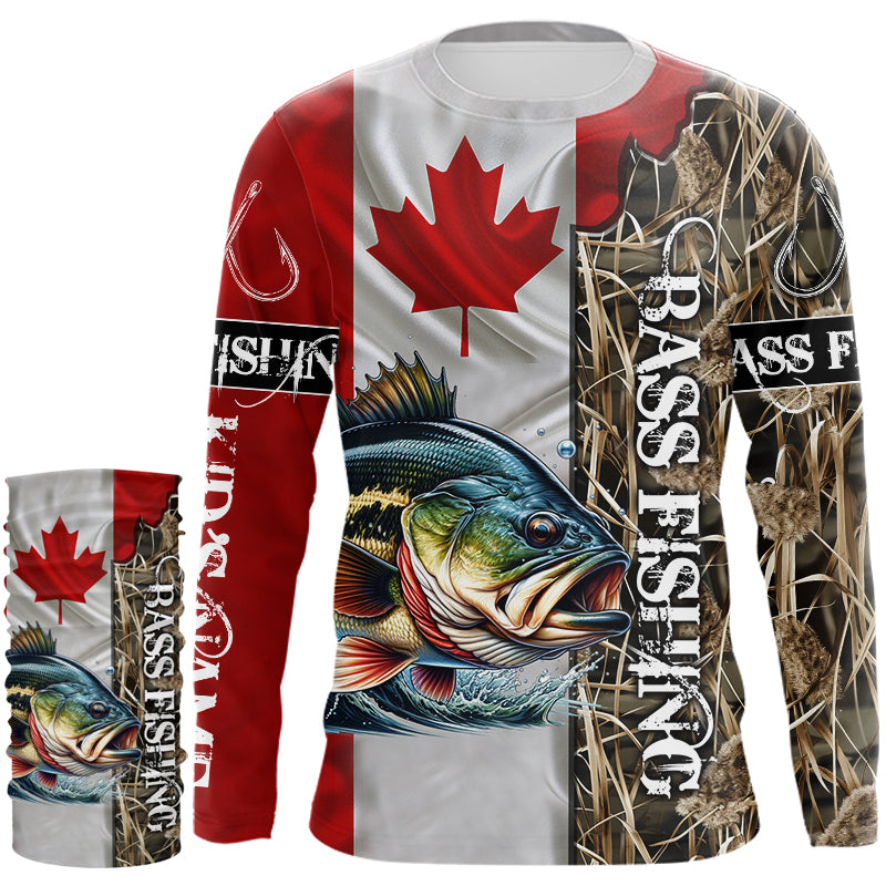 Bass Fishing Canada Flag Camo Custom name All over print shirts - personalized fishing gifts NQS541