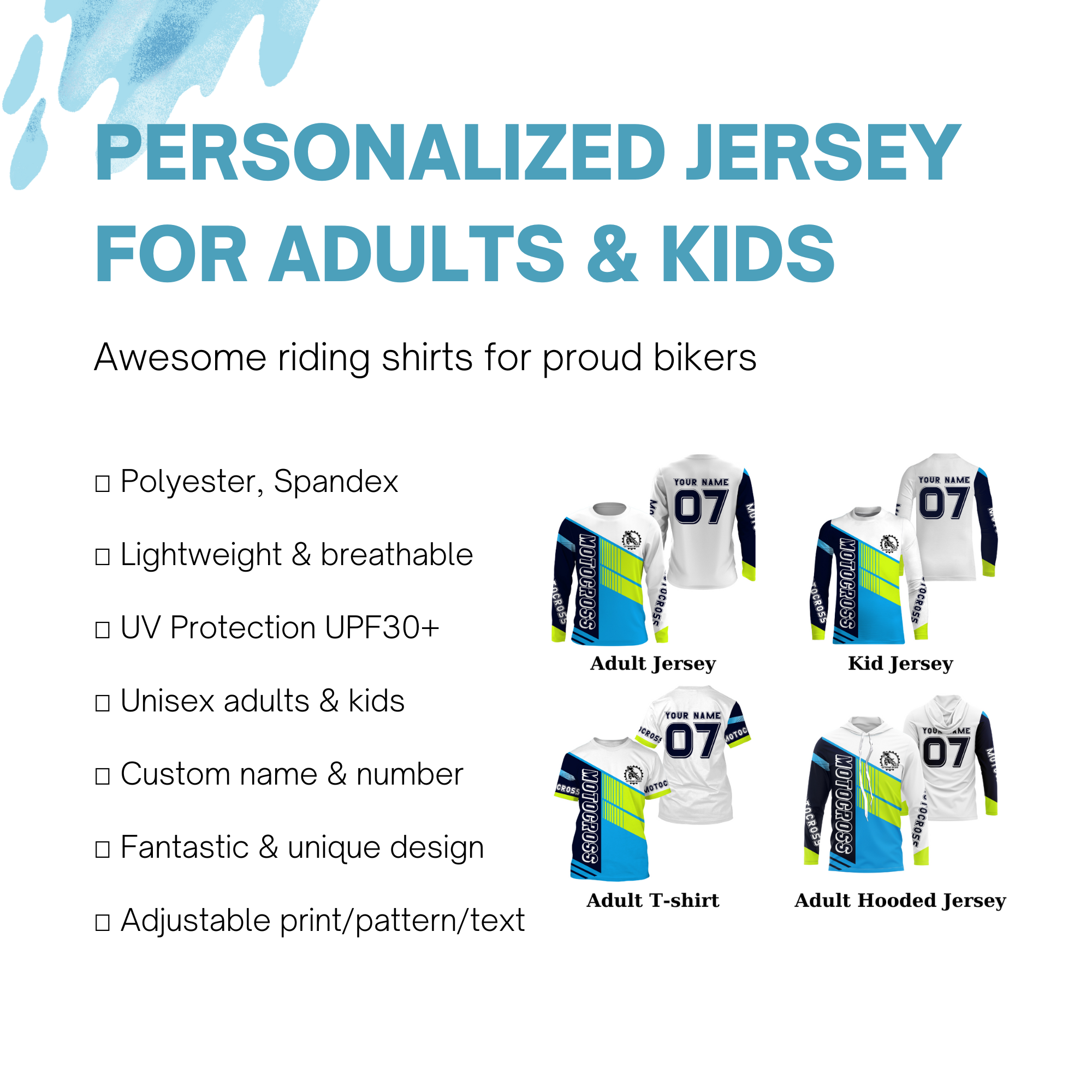 - PERSONALIZED RIDER SHIRT: This super cool shirt is exactly what all bikers are looking for. Add your name/number to make it a unique one that brings your own signature.