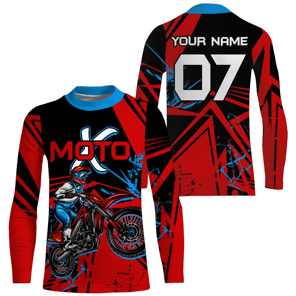 Custom Motocross Jersey Youth Men UPF30+ Red Dirt Bike Shirt MX Racing Off-road MotoX Riding NMS1407