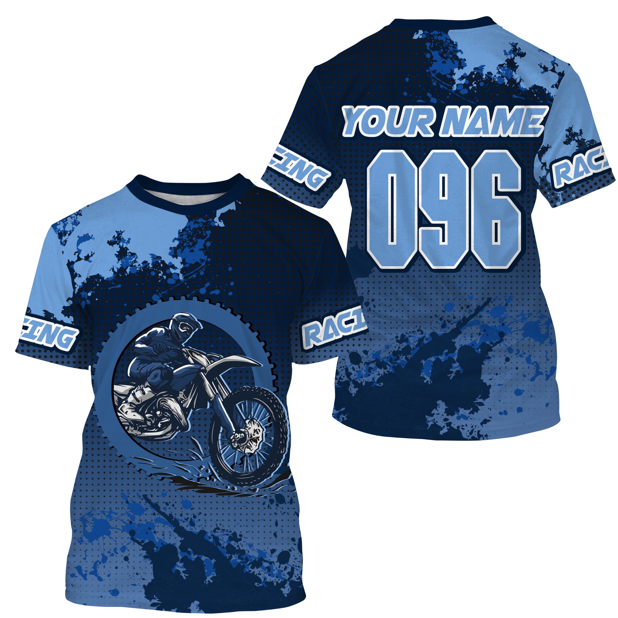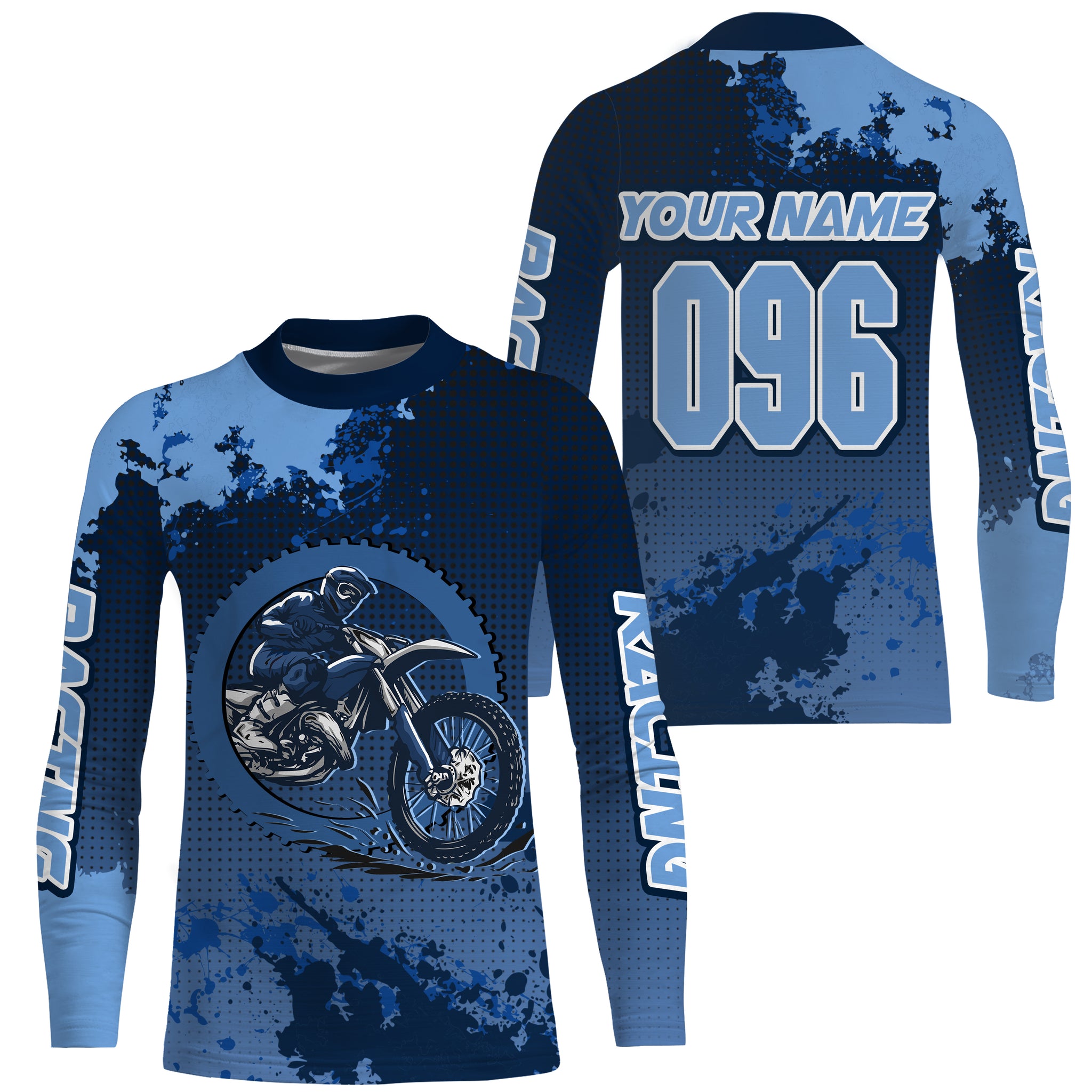 Custom Motocross racing jersey UV protective blue dirt bike for youth men women motorcycle shirt PDT25