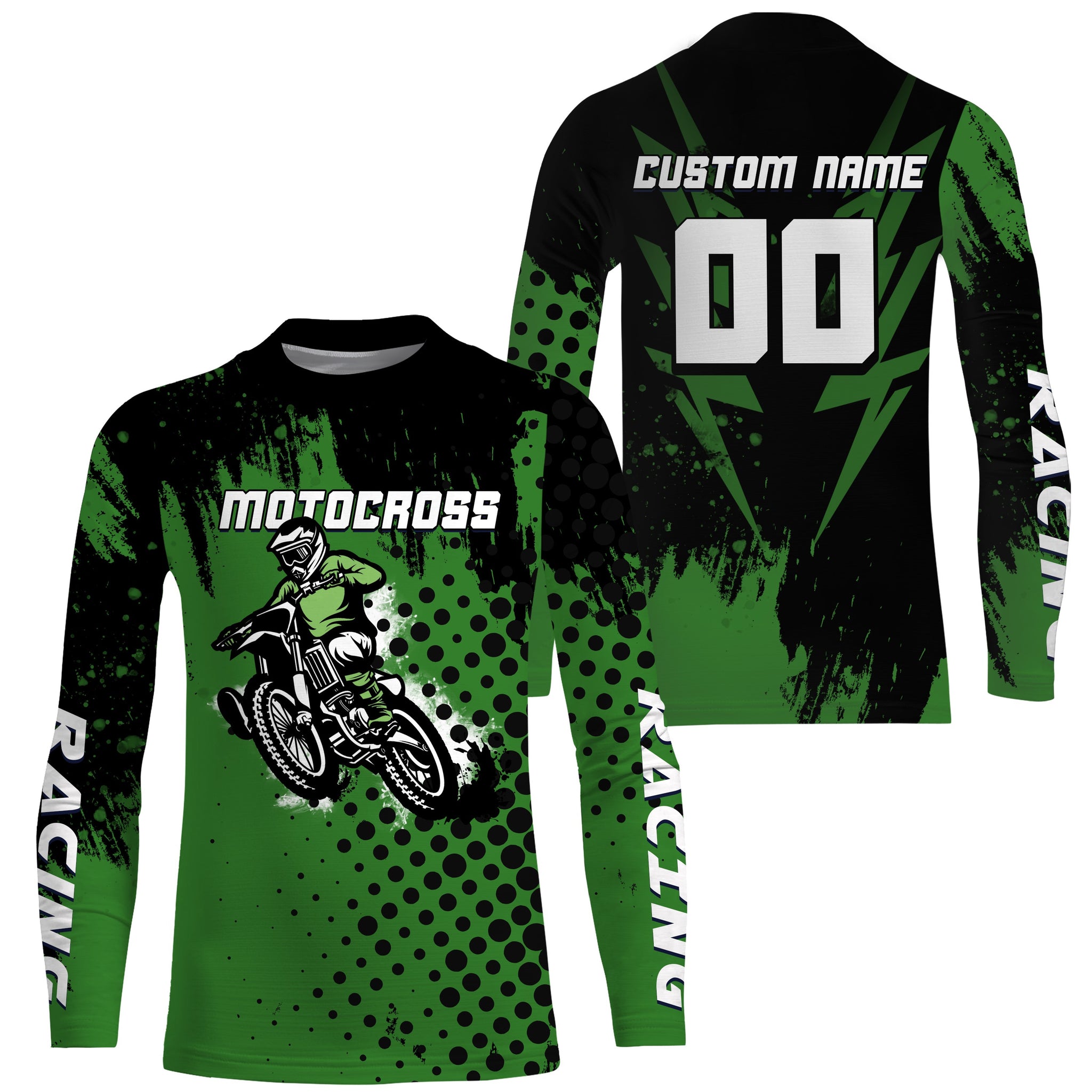 Custom MX Jersey UPF30+ Green Dirt Bike Youth Motocross Riding Shirt Men Women Off-Road Motorcycle PDT630