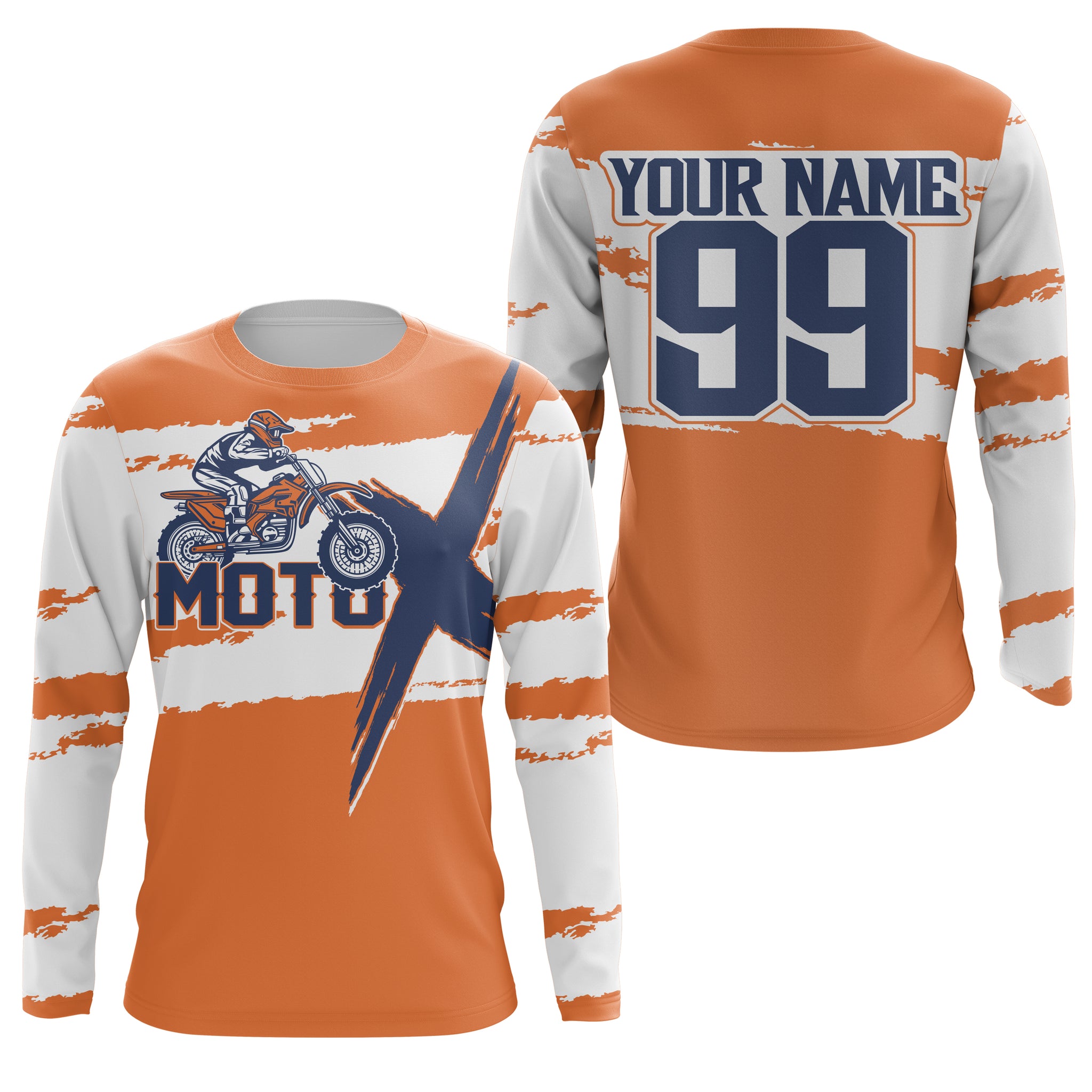 Custom name number dirt bike racing jersey orange kids men Motocross off-road UPF30+ MotoX shirt PDT126