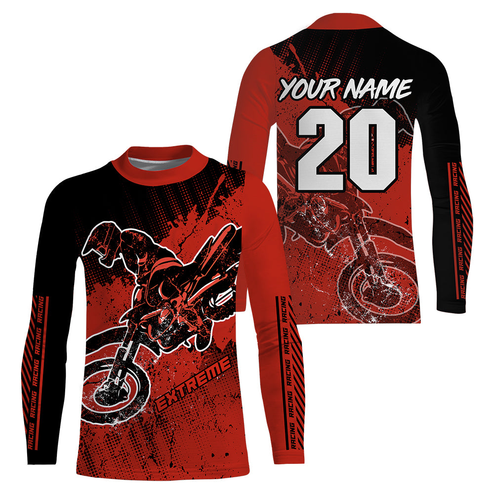 Extreme Motocross Jersey Personalized UPF30+ Red Dirt Bike Shirt Youth Men MX Riding Motorcycle PDT553