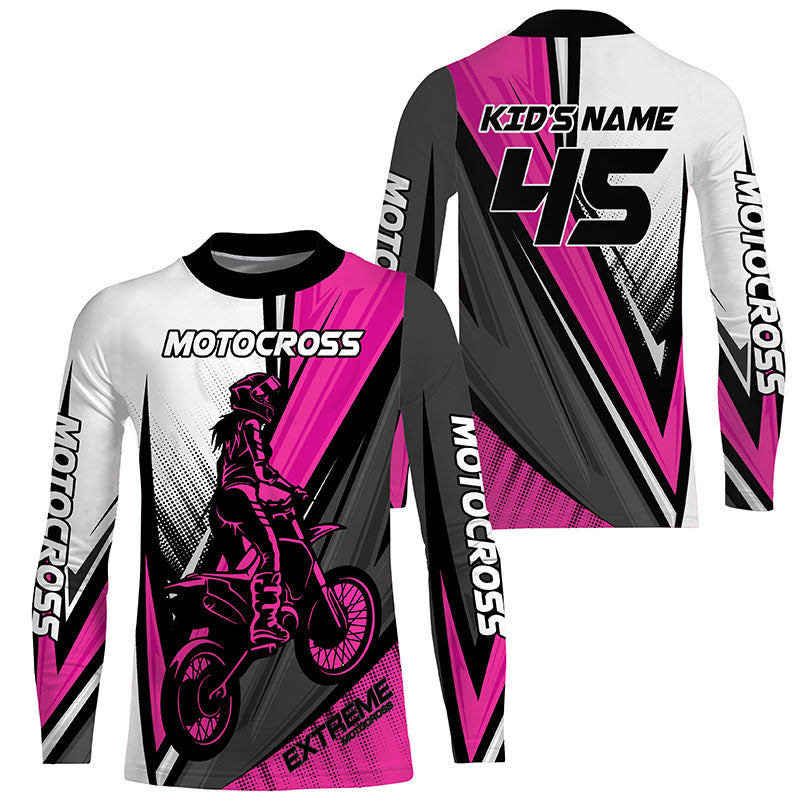 Girls Women Extreme Motocross Jersey Personalized UPF30+ Pink MX Racing Dirt Bike Shirt NMS1219
