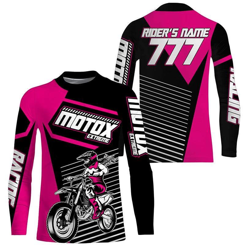 Girls Women Personalized MotoX Jersey UPF30+ Pink Dirt Bike Racing Motocross Off-Road Shirt NMS1221