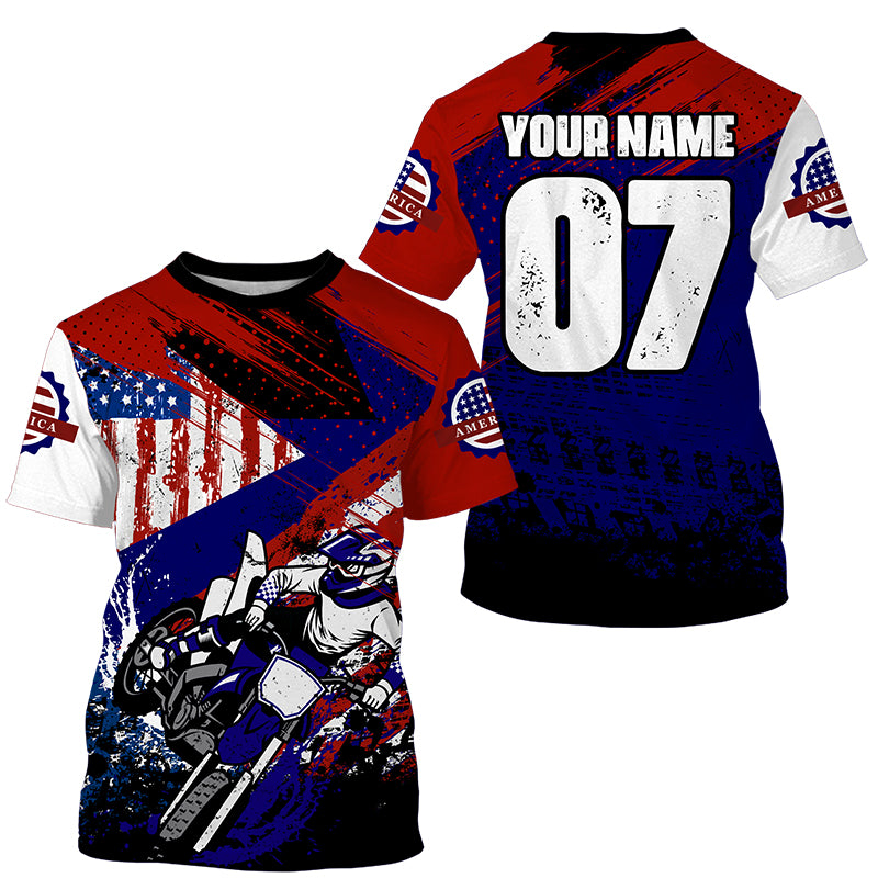 Kid youth adult dirt bike jersey custom UPF30+ USA flag Motocross racing shirt off-road motorcycle PDT274