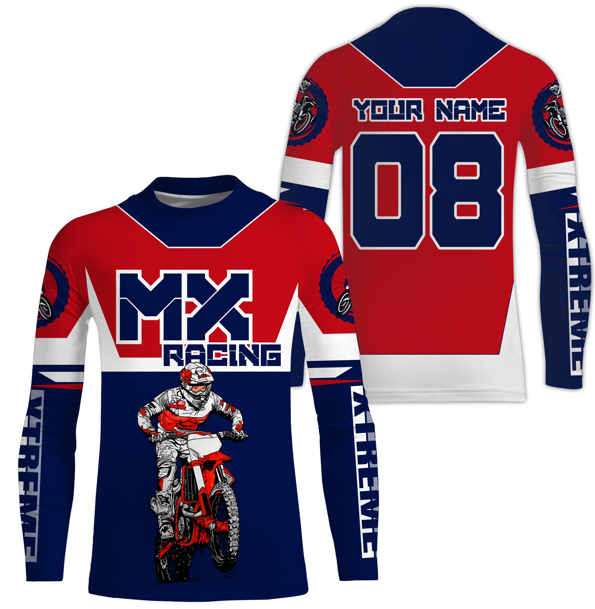 Men women youth dirt bike racing jersey UPF30+ blue red Motocross custom off-road extreme shirt PDT208