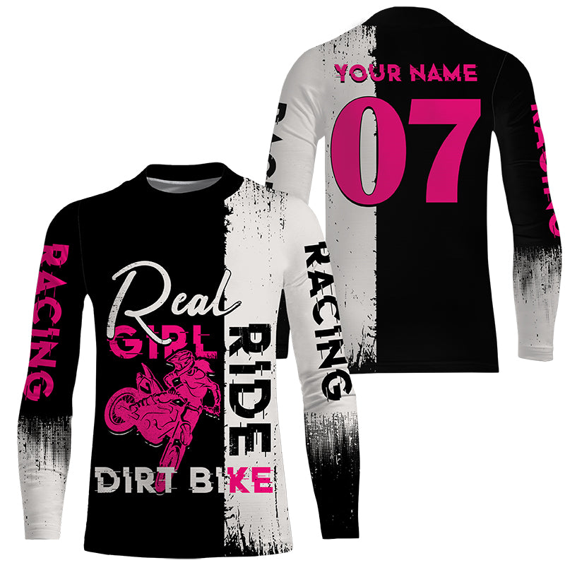 Motocross jersey custom youth women men UPF30+ pink racing Real Girl Ride Dirt Bike off-road shirt PDT297