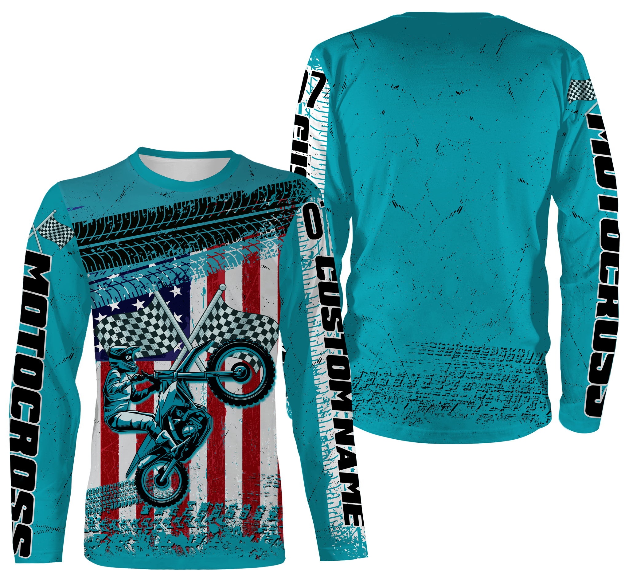 Motocross Racing American Flag Over Printed Hoodie, Long Sleeves, Custom MotoX Dirt Bike Shirt| NMS272