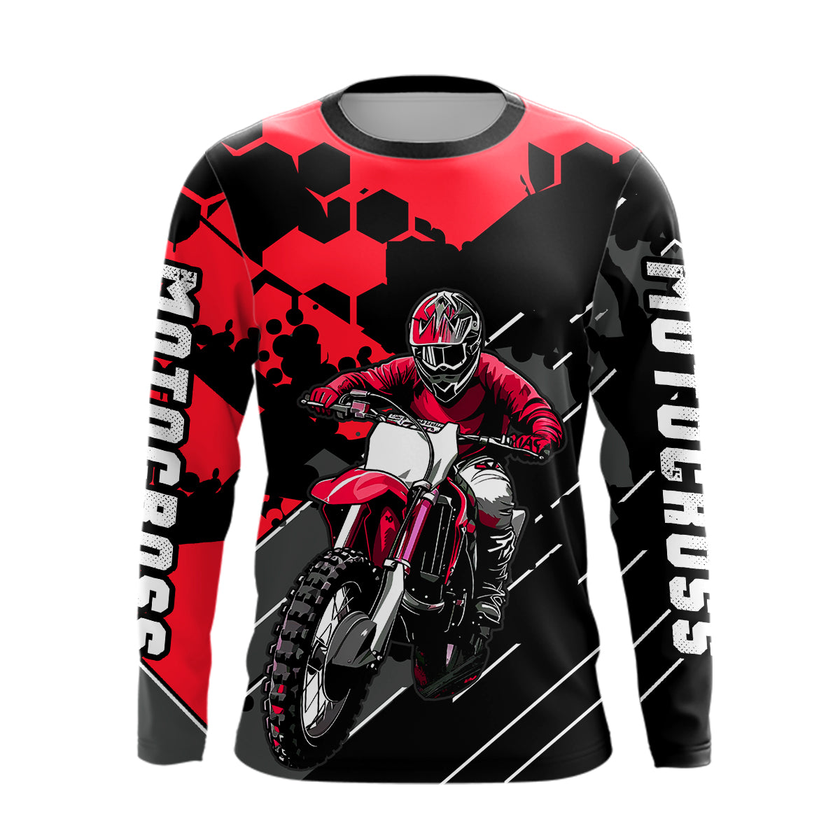 Motocross Racing Jersey Red Upf30+ Motorcycle Dirt Bike Jersey Off-Road Shirt Men Kid Women XM298