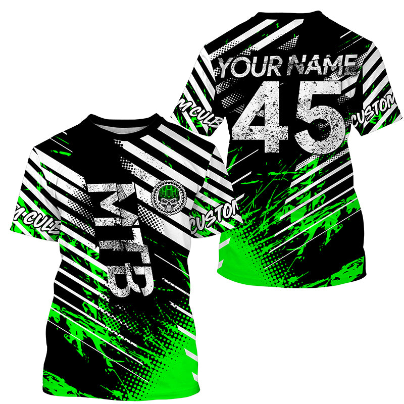 Mountain bike jersey UPF30+ Green MTB shirt kids adult custom downhill cycling gear boys girls| SLC248