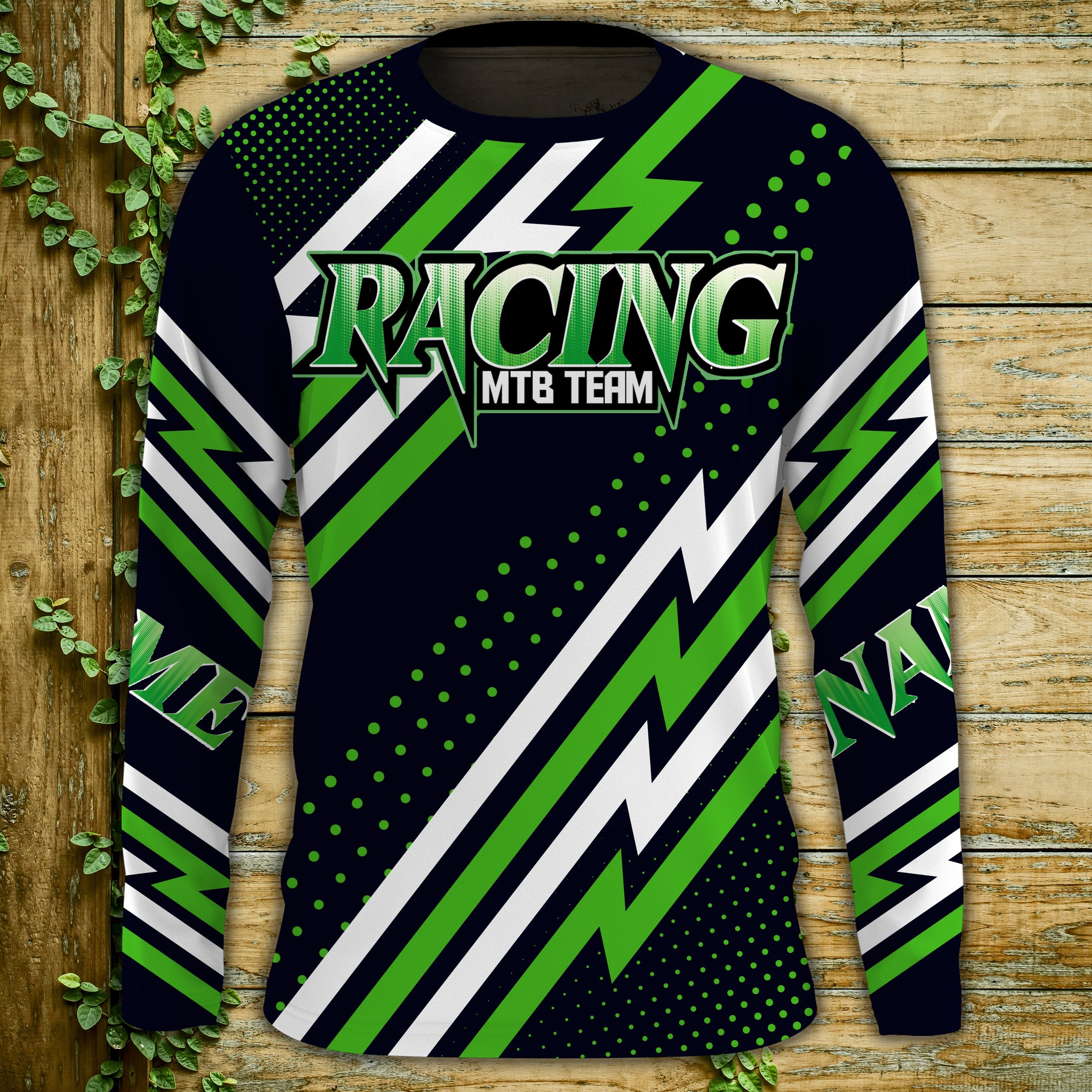 MTB Jersey, Custom Green Downhill Mountain Bike Racing Shirt, Cycling Shirt UV Protection UPF 30+| JTS495