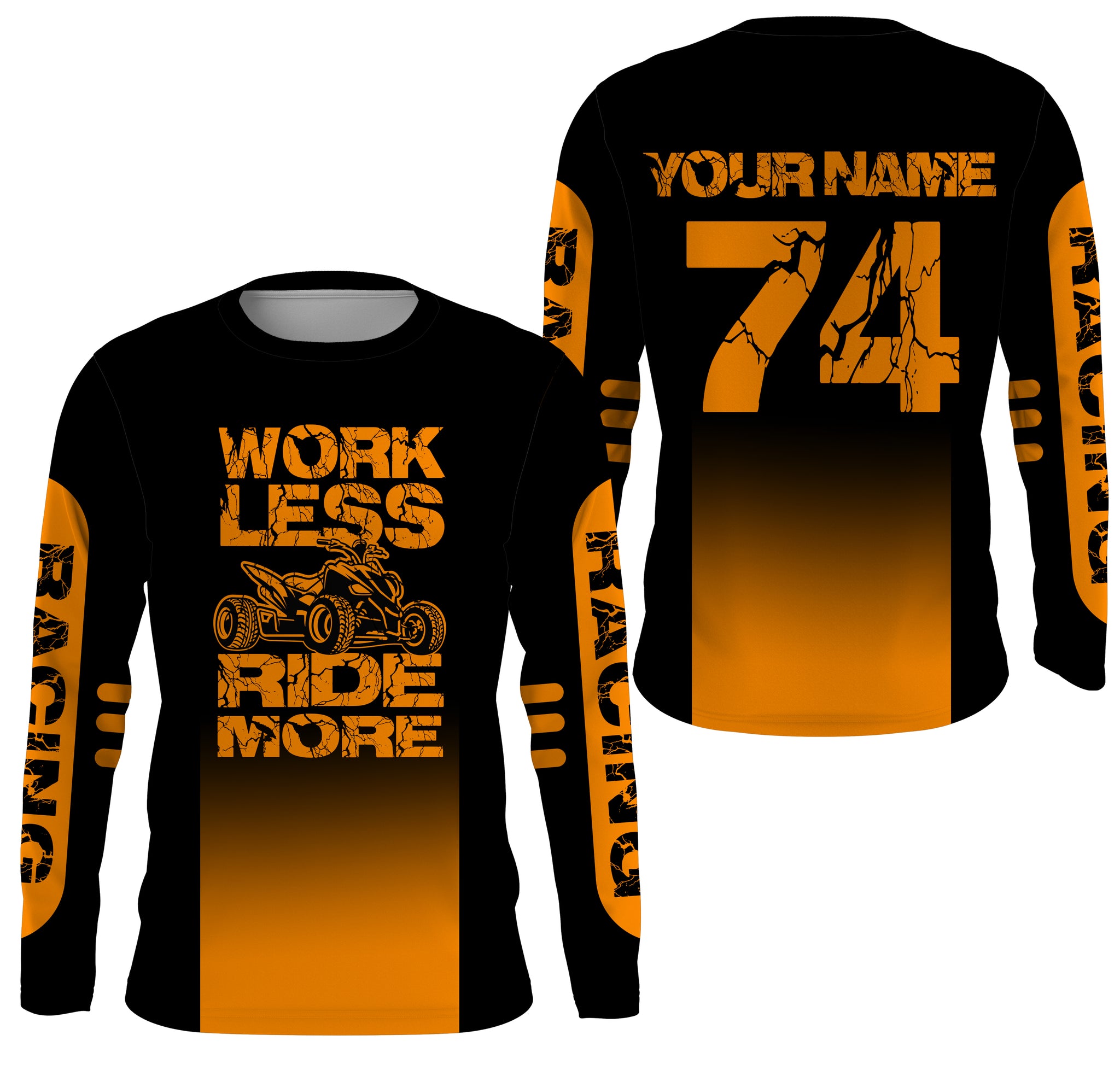 Orange ATV Motocross Jersey Adult&Kid UPF30+ Work Less Ride More Quad Bike Shirt ATV MX Off-Road PDT730