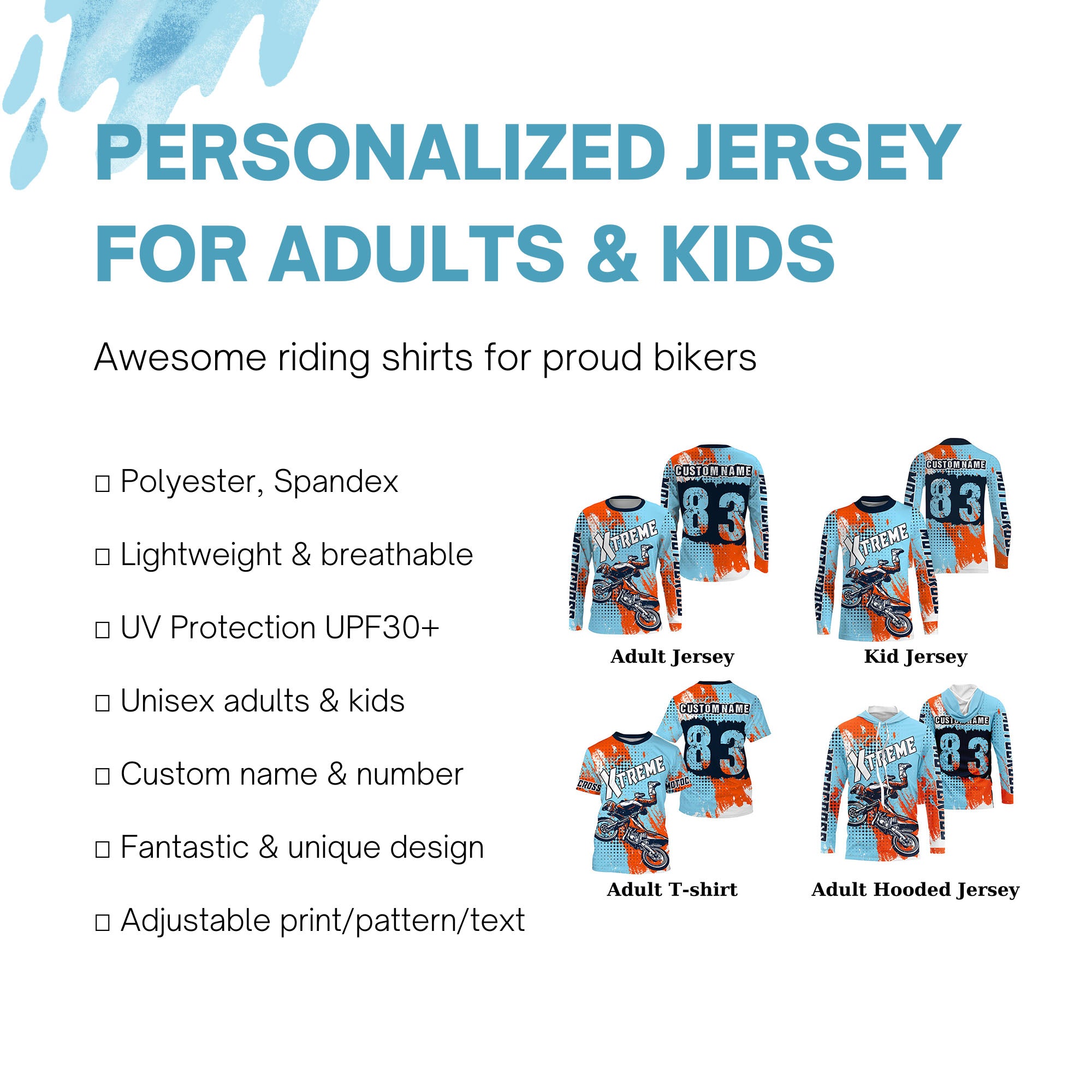• PERSONALIZED RIDING JERSEY: This super cool shirt is exactly what all bikers are looking for. Add your name/number to make it a unique one that bears your own imprints.