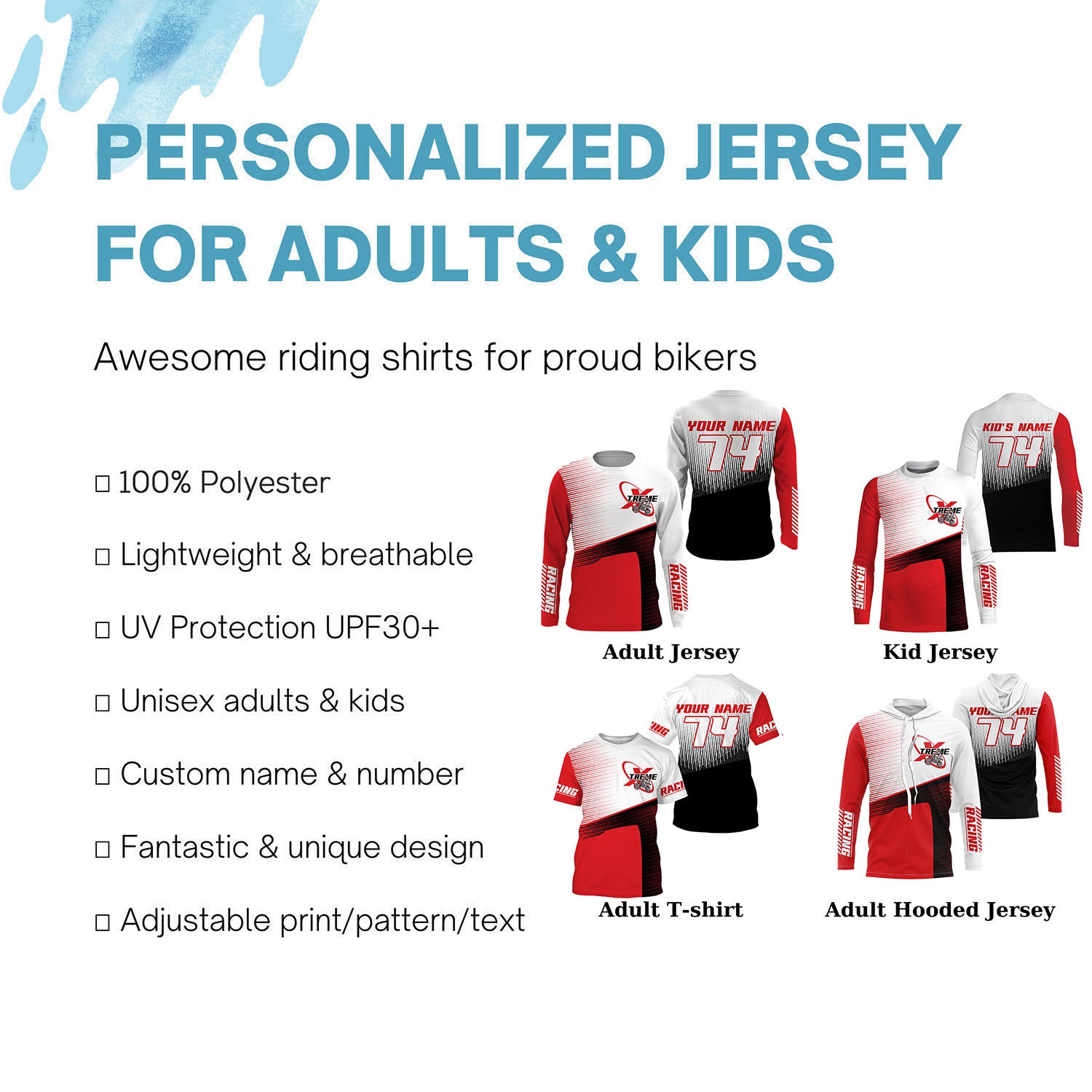 • PERSONALIZED RIDING JERSEY: This super cool shirt is exactly what all bikers are looking for. Add your name/number to make it a unique one that bears your own imprints.