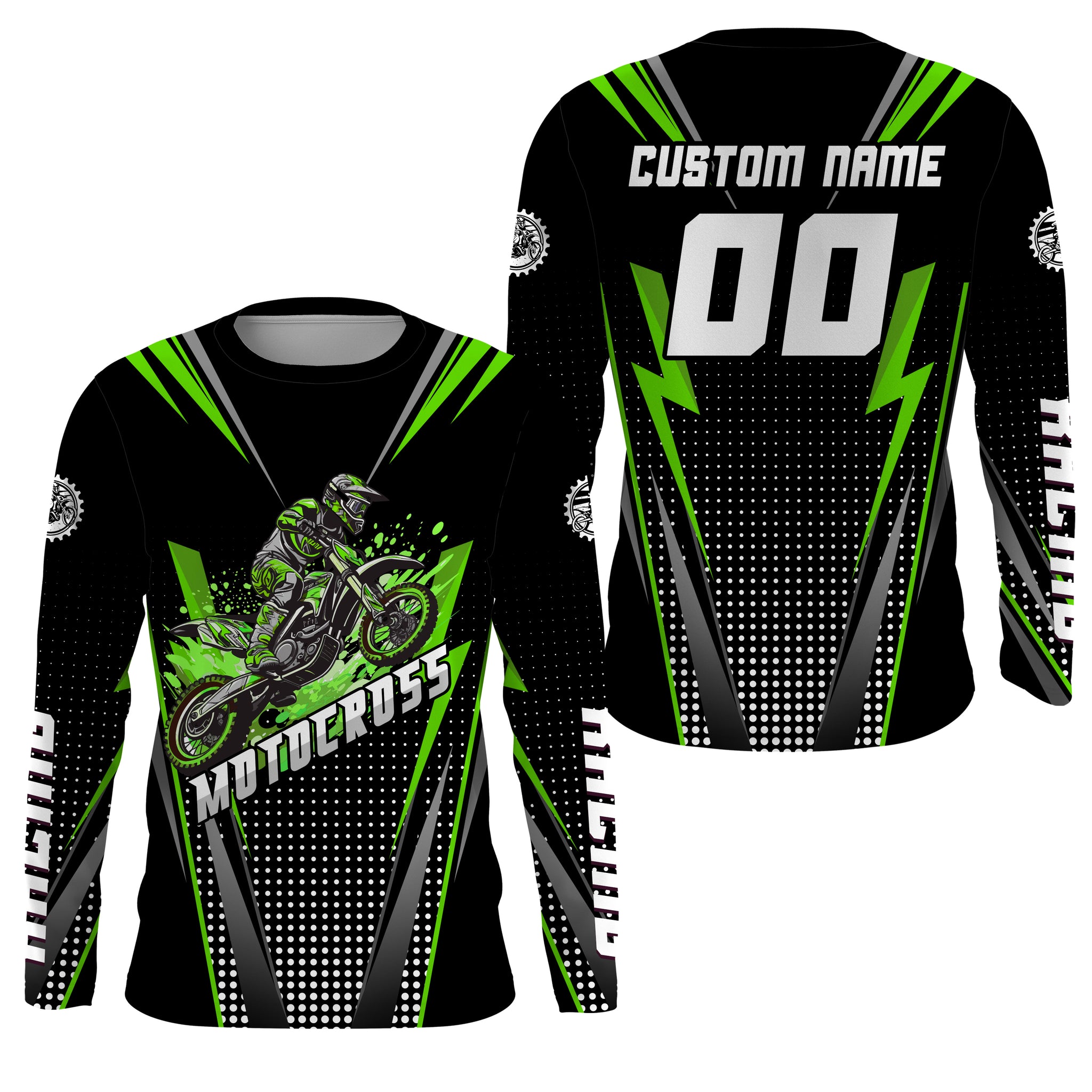 Personalized Green Motocross Jersey Kid&Adult Upf30+ Dirt Bike Shirt Off-Road Motorcycle Racing PDT671