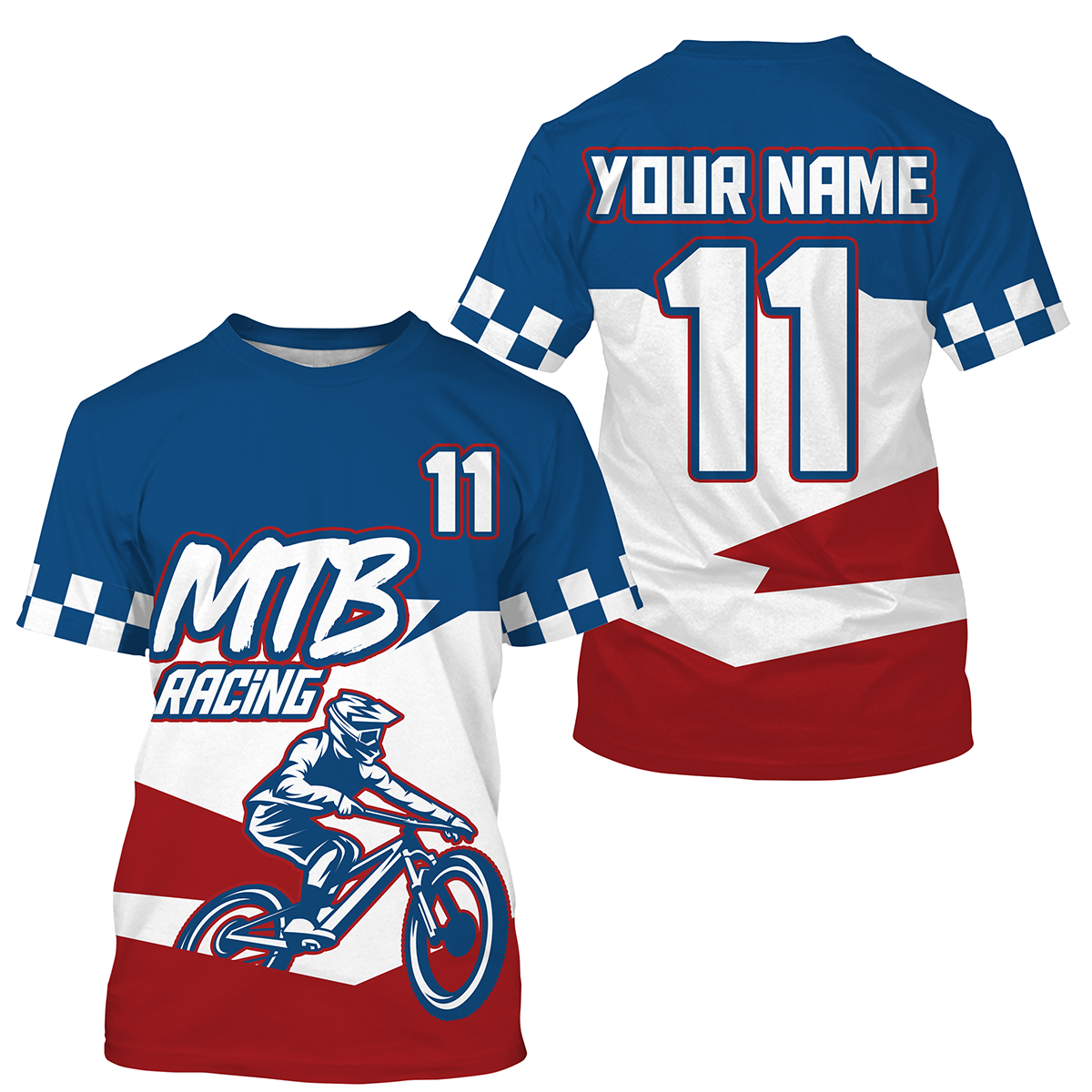 Personalized adult kid MTB biking jersey UPF30+ blue mountain bike shirt enduro cycling racewear| SLC45