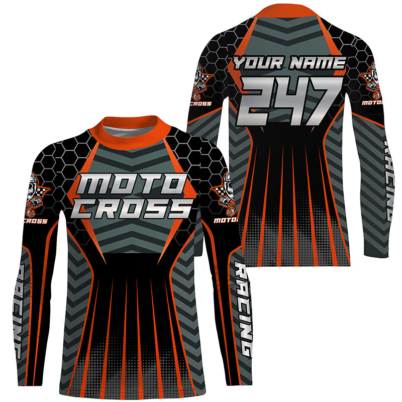Personalized orange Motocross jersey men women kid racing UPF30+ biker off-road motorcycle shirt PDT303