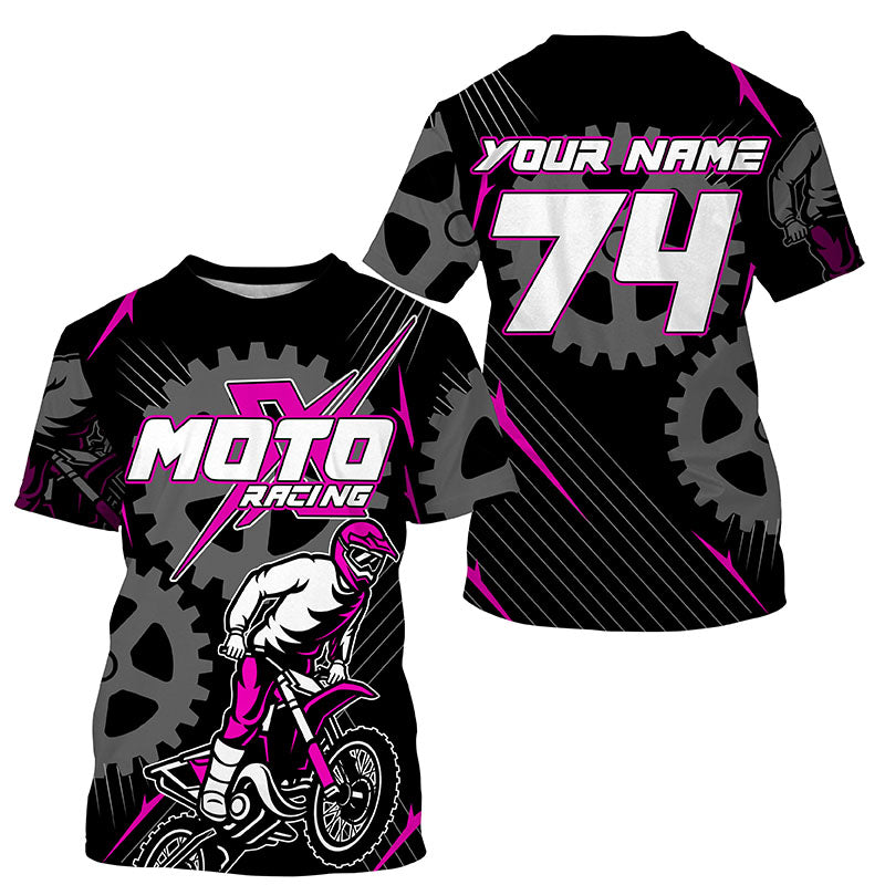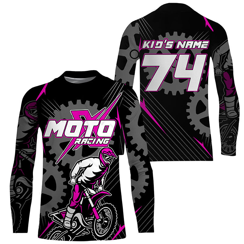 Pink dirt bike jersey for kid women men UPF30+ extreme custom Motocross off-road shirt PDT365