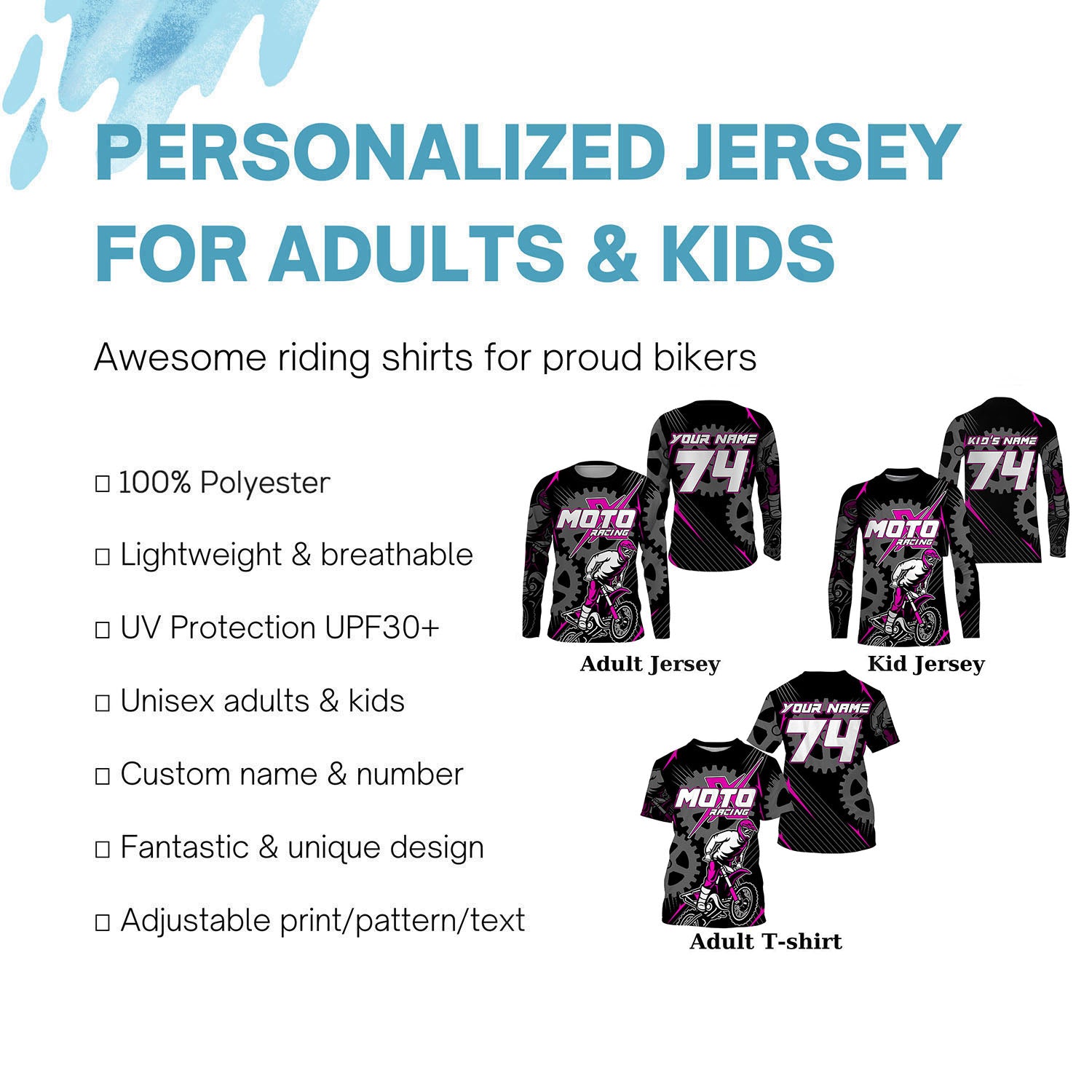 • PERSONALIZED RIDING JERSEY: This super cool shirt is exactly what all bikers are looking for. Add your name/number to make it a unique one that bears your own imprints.