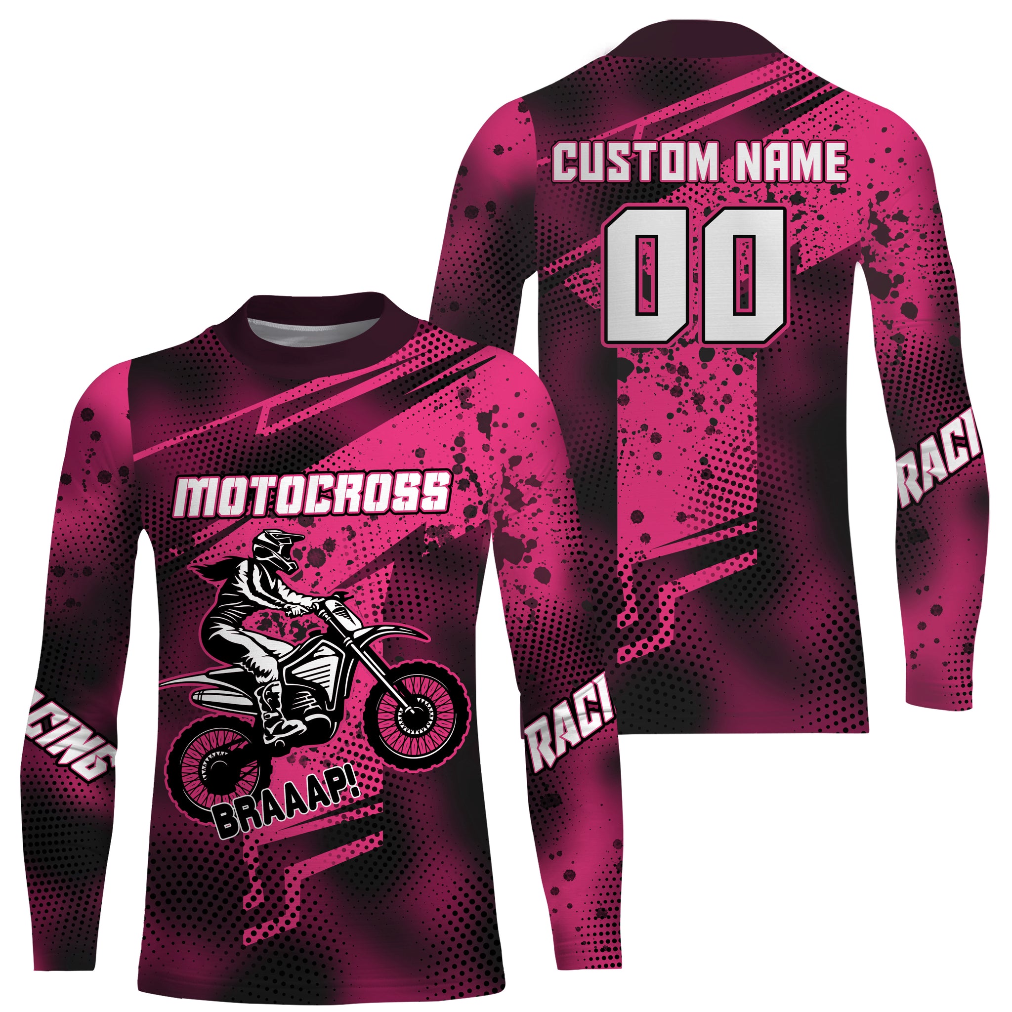 Pink Motocross Racing Jersey Youth UPF30+ Off-Road MX Racing Dirt Bike Shirt Biker Girl Women XM170