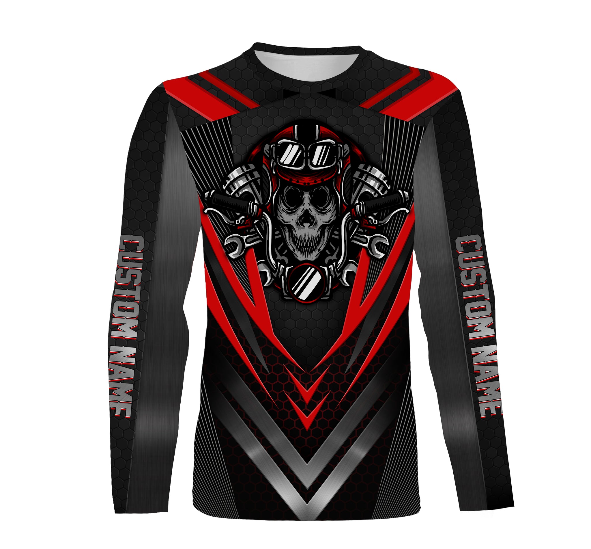 Skull Biker Riding Shirt Personalized Jersey, Motorcycle All Over Print Shirt Off-Road Racing| NMS172
