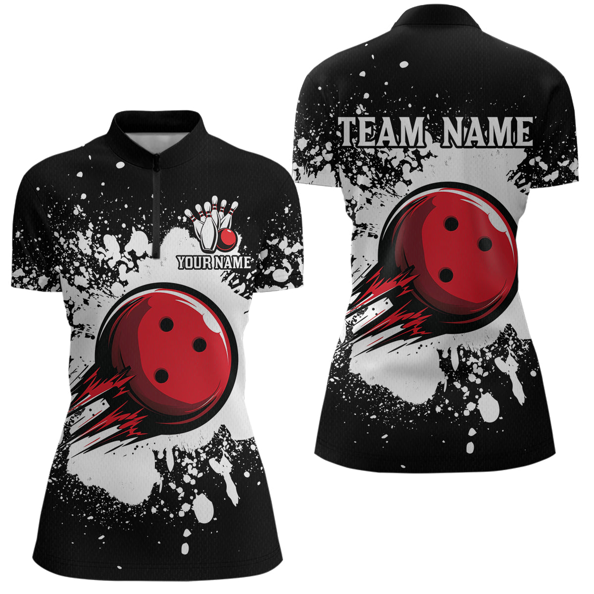 Black Bowling Jersey Men Women Custom Bowling Team Shirts Unisex Bowling Polo Quarter-zip CP32