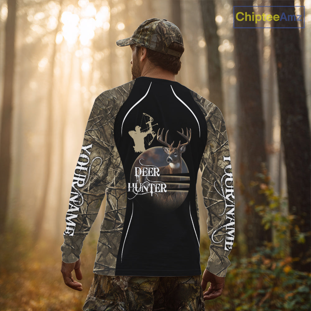 Deer Bow Hunting Camouflage Custom Name Shirts, Personalized Deer Hunting Clothes, Hunting Gifts NBT88
