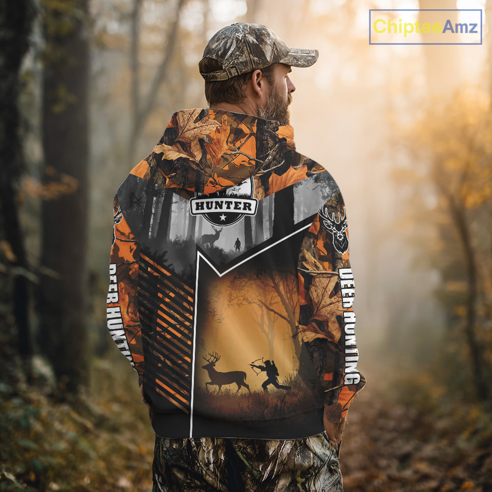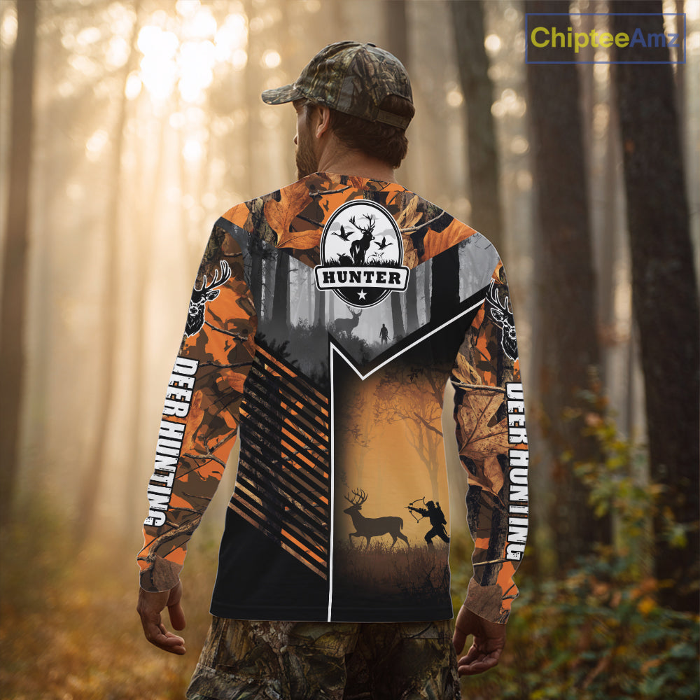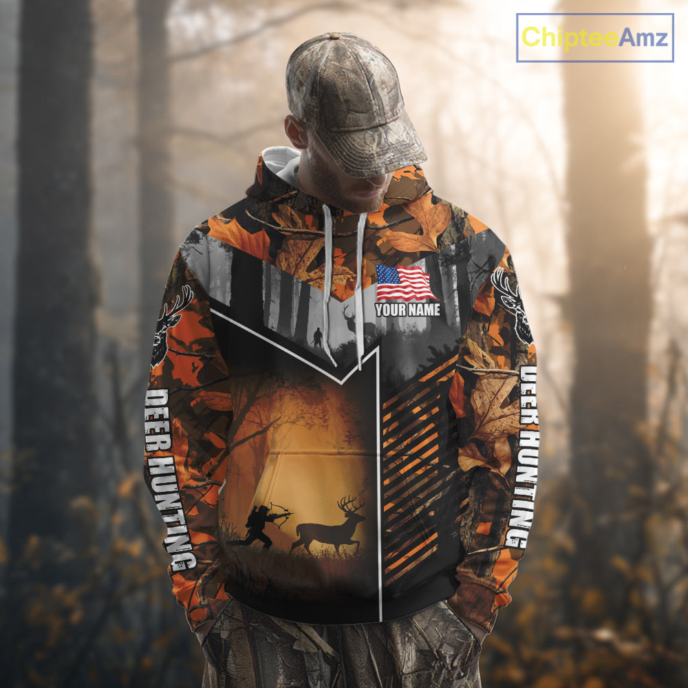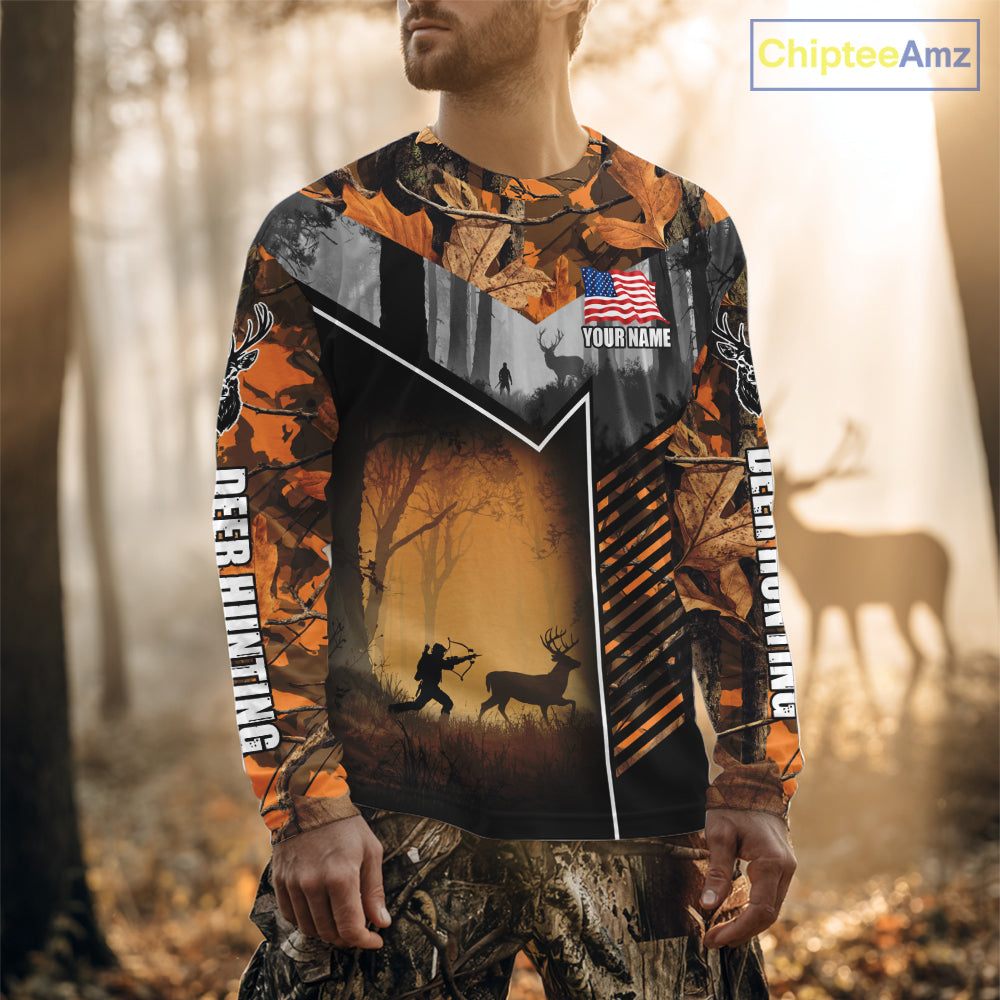 Orange Camo Deer Bow Hunting Custom Name Shirts - Best Hunting Apparel, Hunting Gifts for Men NBT42