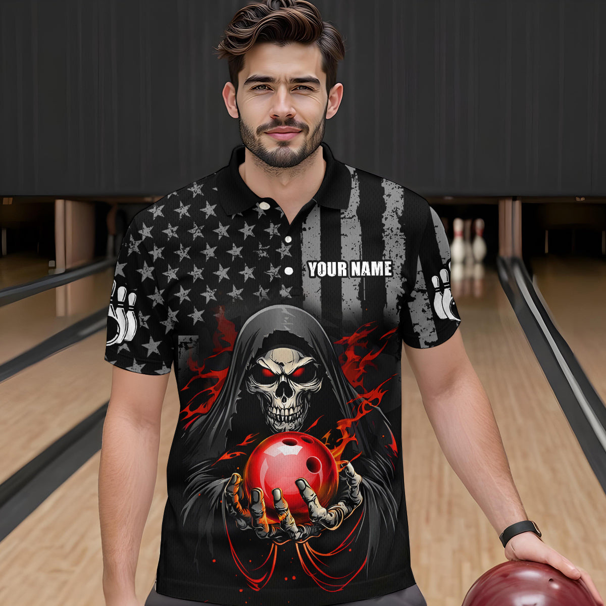 Skull Bowling Shirts Custom Name Bowling Jersey for Men Polo & Quarter Zip Team Bowling Shirts Unisex HNT04