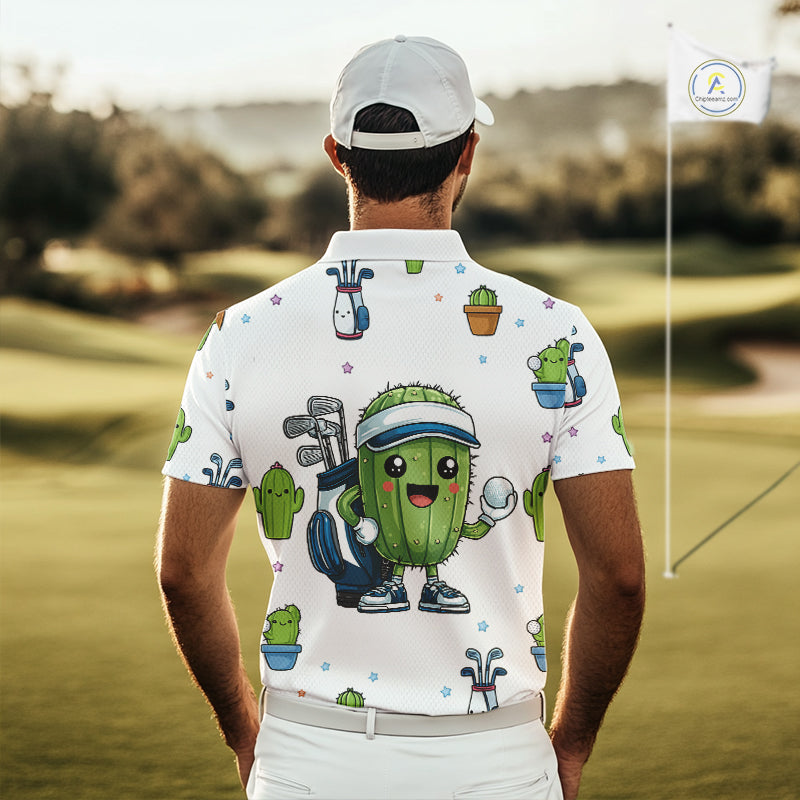Argyle Pattern Mens Golf Polo Shirts Funny Cactus Flower Custom Cactus Golf Shirt Golfer Gifts NHN0012