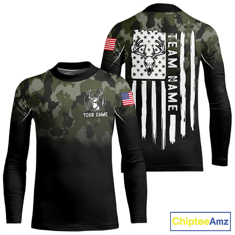 Black green camo American Flag Customize Name Patriotic Deer Hunting 3D All Over Printed Shirts NQS11360