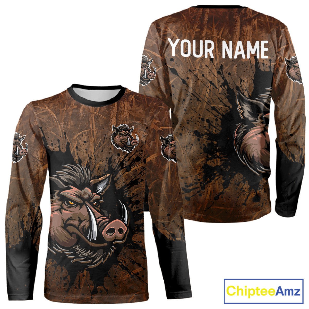 Brown Camo Boar Hunting 3D All Over Printed Shirts, Custom Boar Hunting Outfit, Hunting Gifts NBT212