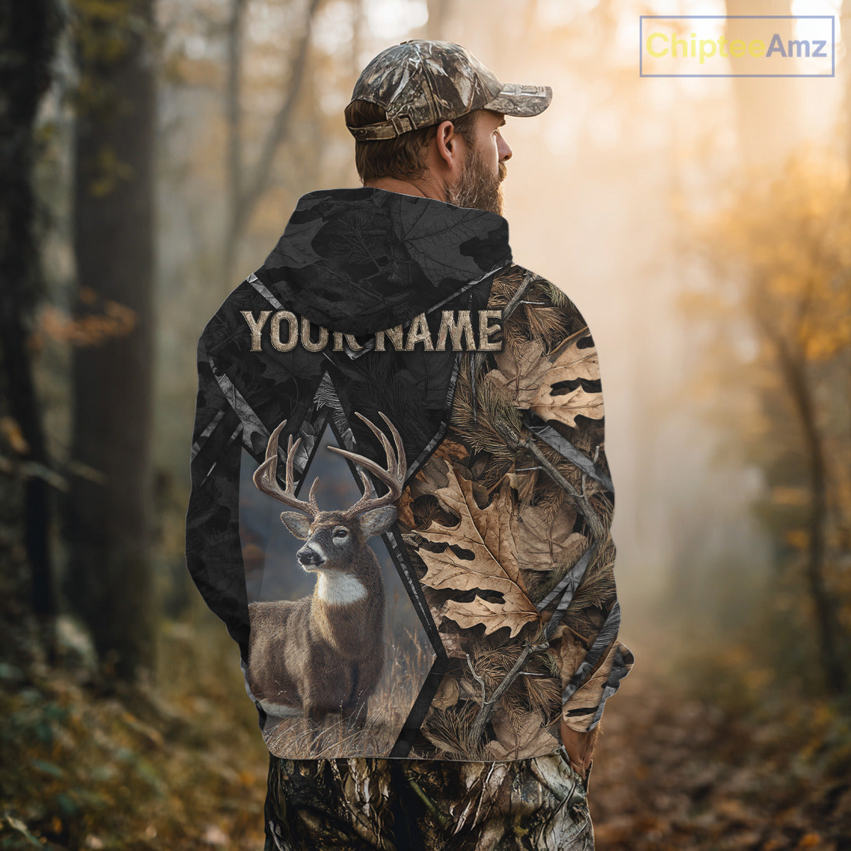Deer Hunting 3D All Over Print Autumn Camo Black Shirt Custom Name Gifts For Hunter NHT216