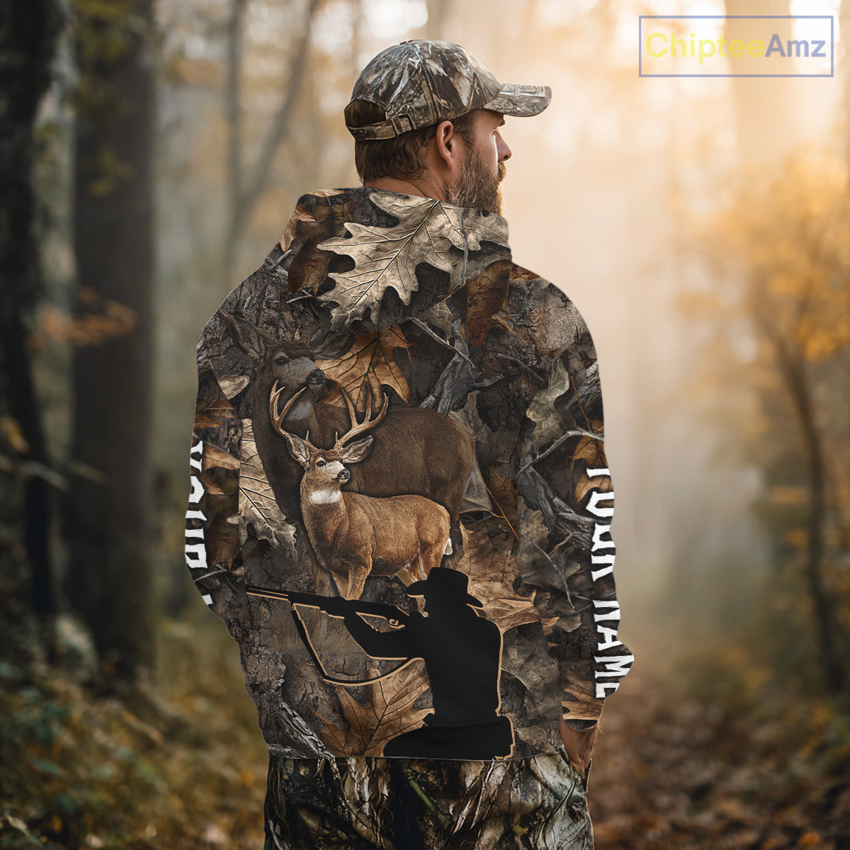 Personalized Whitetail Deer Hunting Brown Camo with Hunter 3D Print Custom Name Shirts, Hunting Gift NBT269