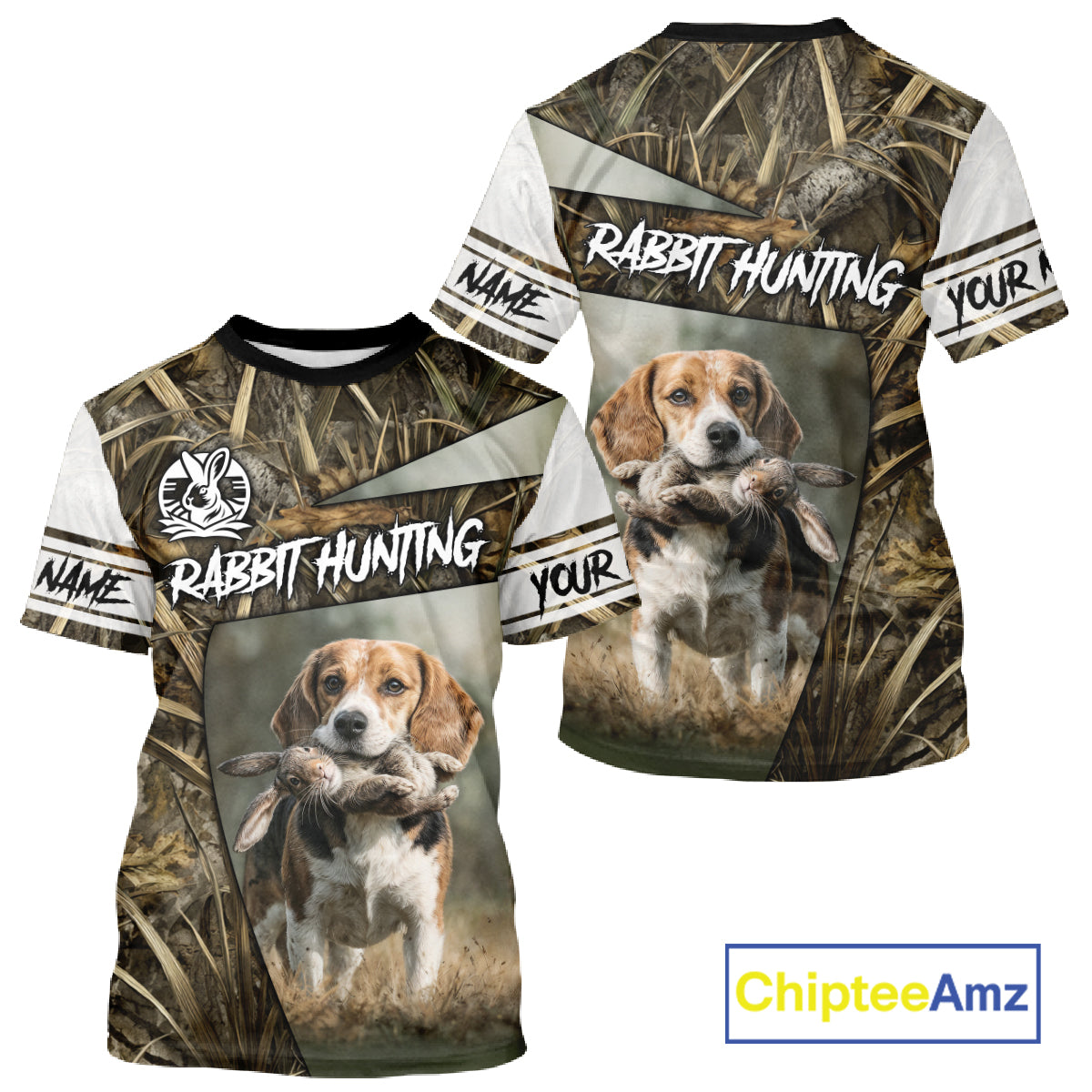 Rabbit Hunting Beagle Dog Camouflage Custom Name 3D Shirts, Rabbit Hunting Clothing for Men NBT215