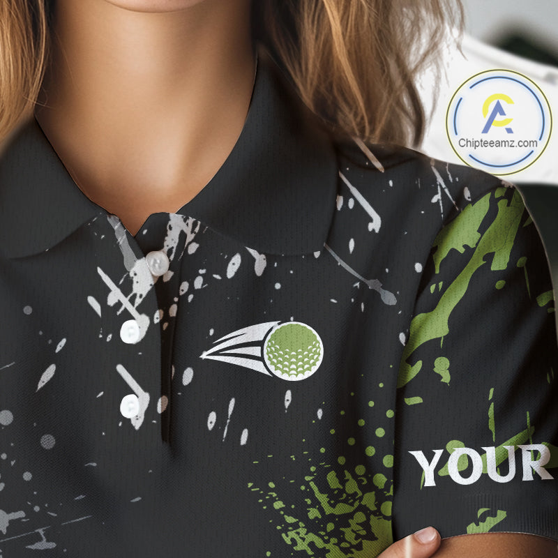 Black and Green Camo Golf Polo shirt for Women Custom golf team uniform golf outfit NQS9797