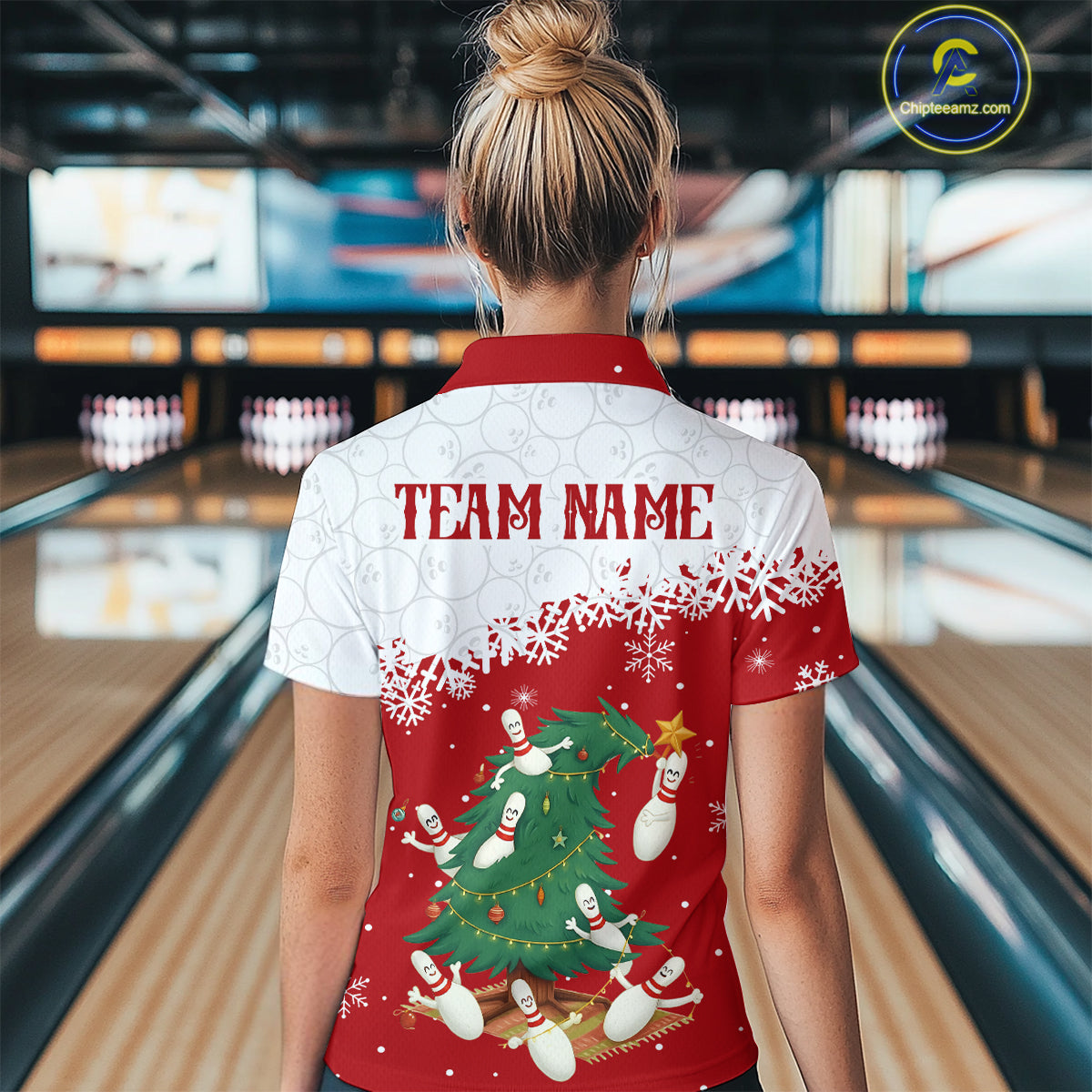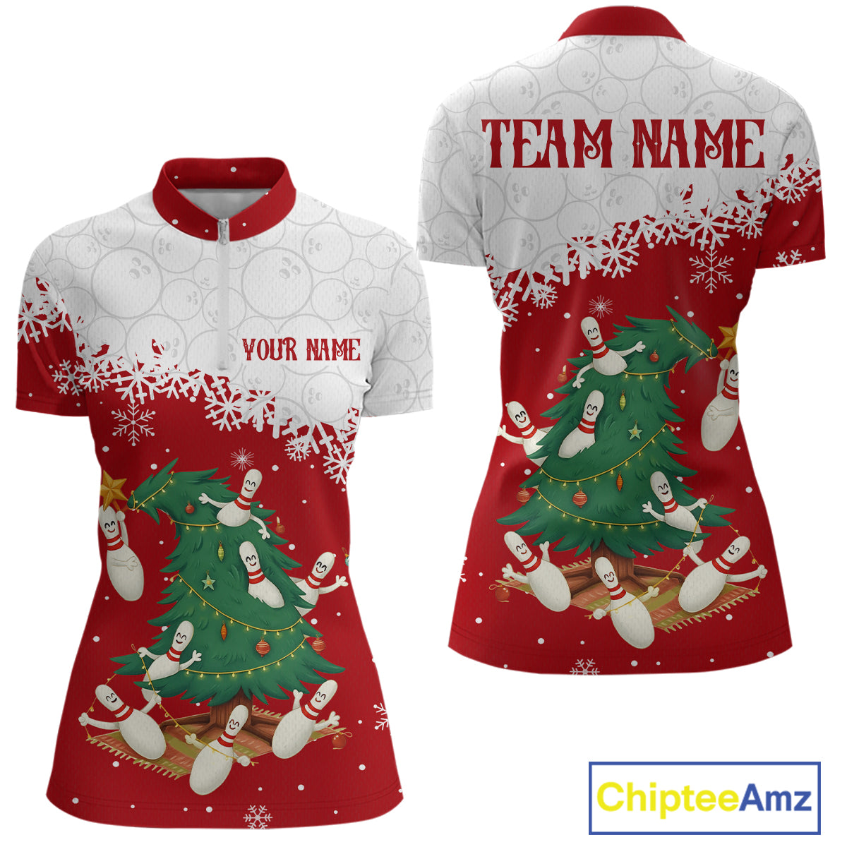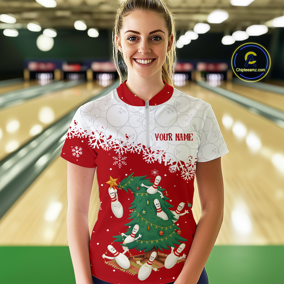 Custom Funny Christmas Bowling Jersey for Women Bowling Team Shirts Polo & 1/4 Zip HNT131