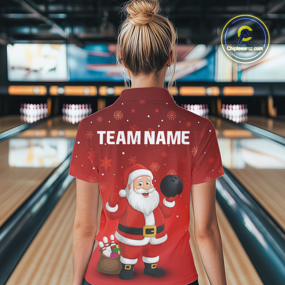 Funny Santa Bowling Red Christmas snowflake pattern Women's Bowling shirt Custom Xmas Bowling Outfits NQS10992