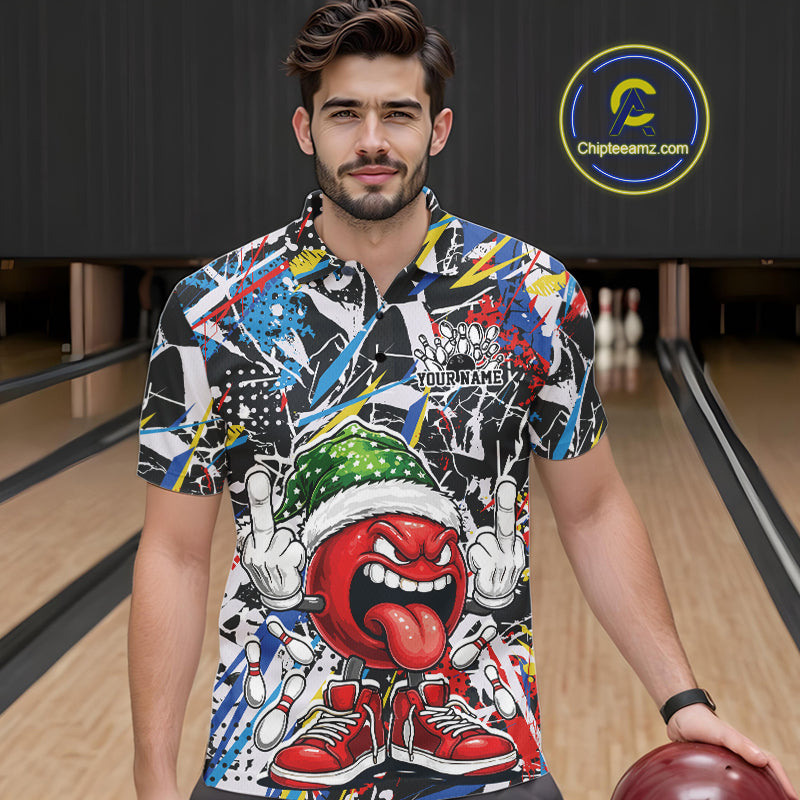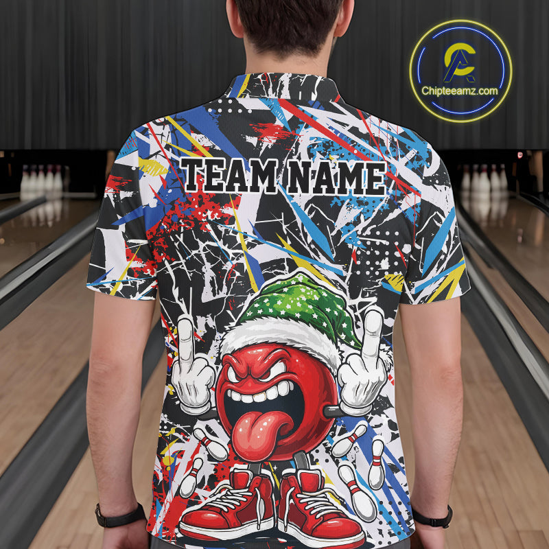 Custom Funny Colorful Christmas Bowling Men Polo Shirts, Crazy Bowling Ball Xmas Outfit IPHW10133