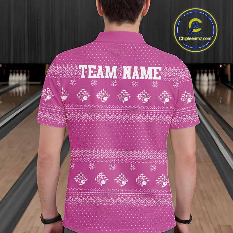 Custom Funny Santa Christmas Men Bowling Polo Shirts, Bright Magenta Xmas Team Outfit IPHW10144
